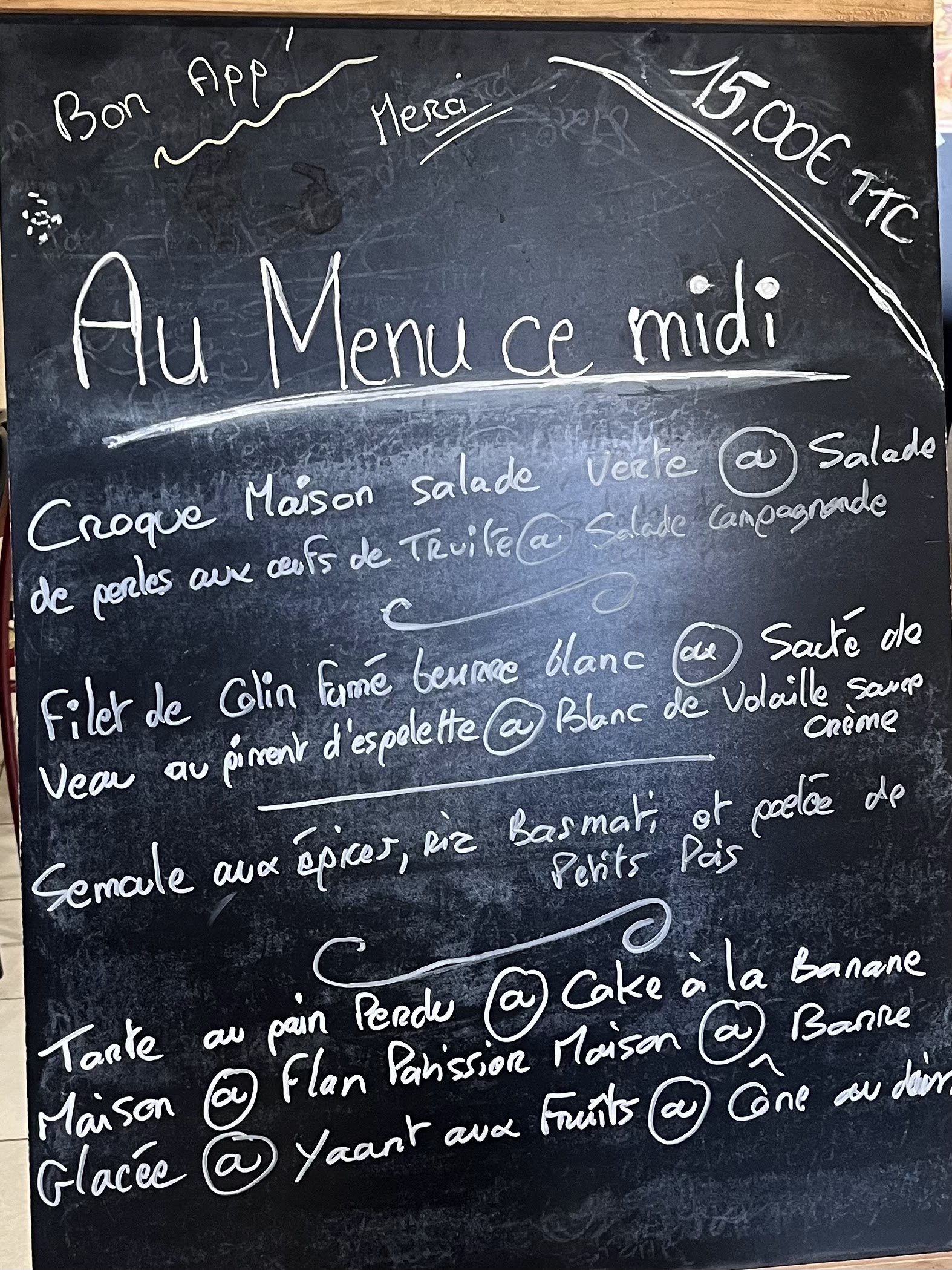 Très bon accueil. Joli petit bar restaurant à côté de l’église du village. J’ai bien aimé le croque maison avec la petite salade à l’huile de noix. Entrée/plat/dessert pour 15€