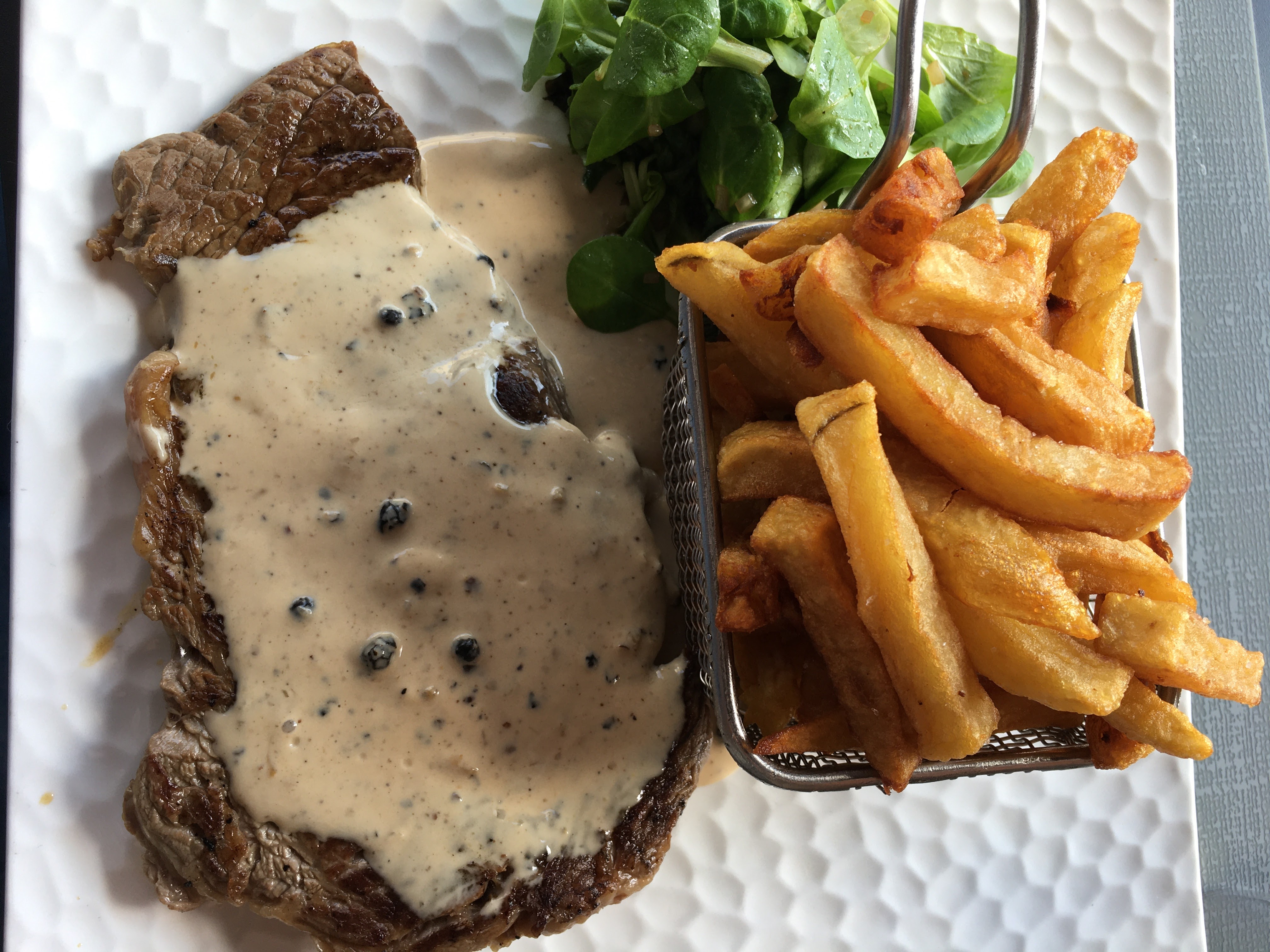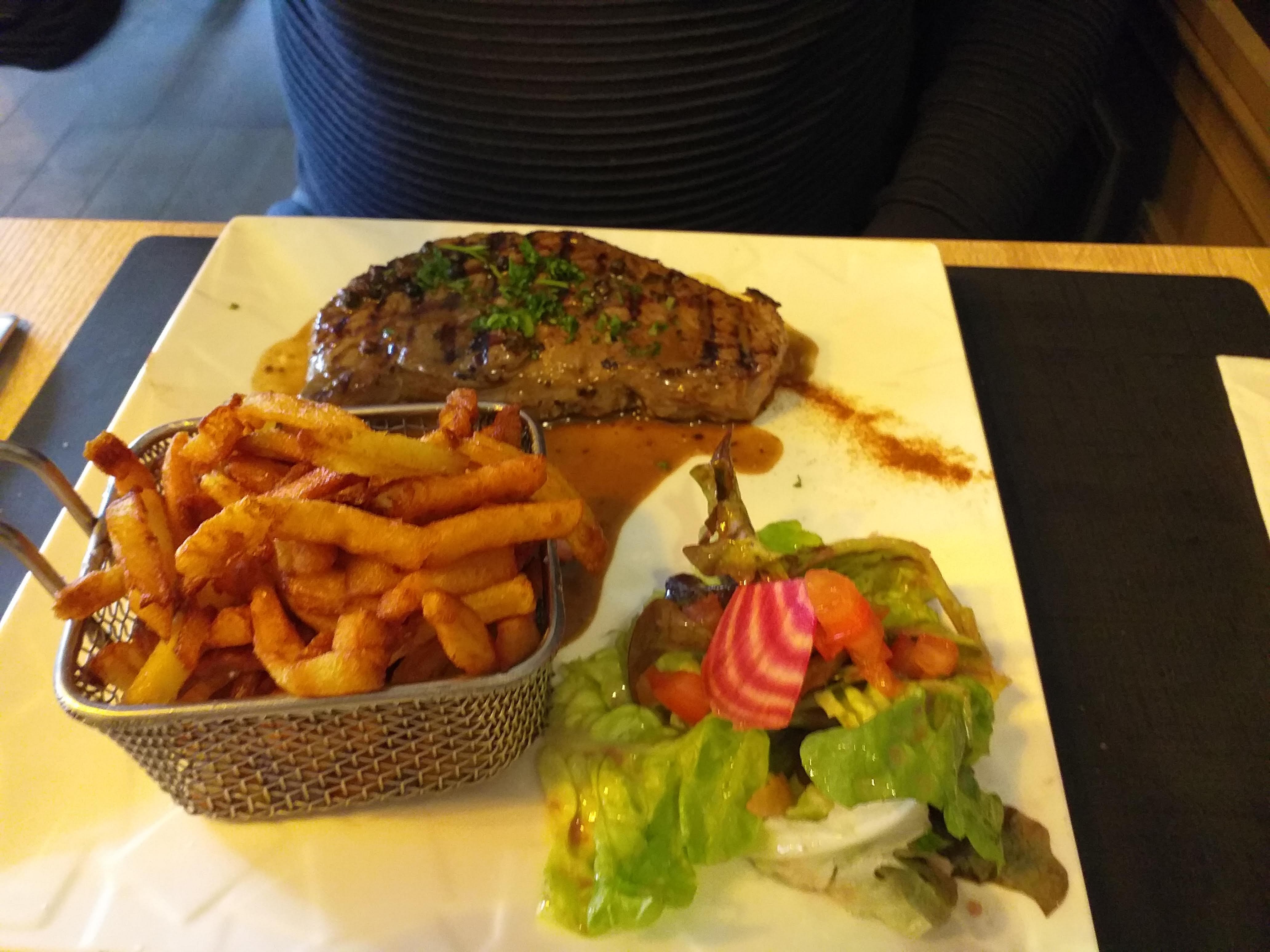 J'ai pris La bavette avec la sauce échalotesje suis contente.en dessert le Paris Brest aussi très bon.je reviendrais .