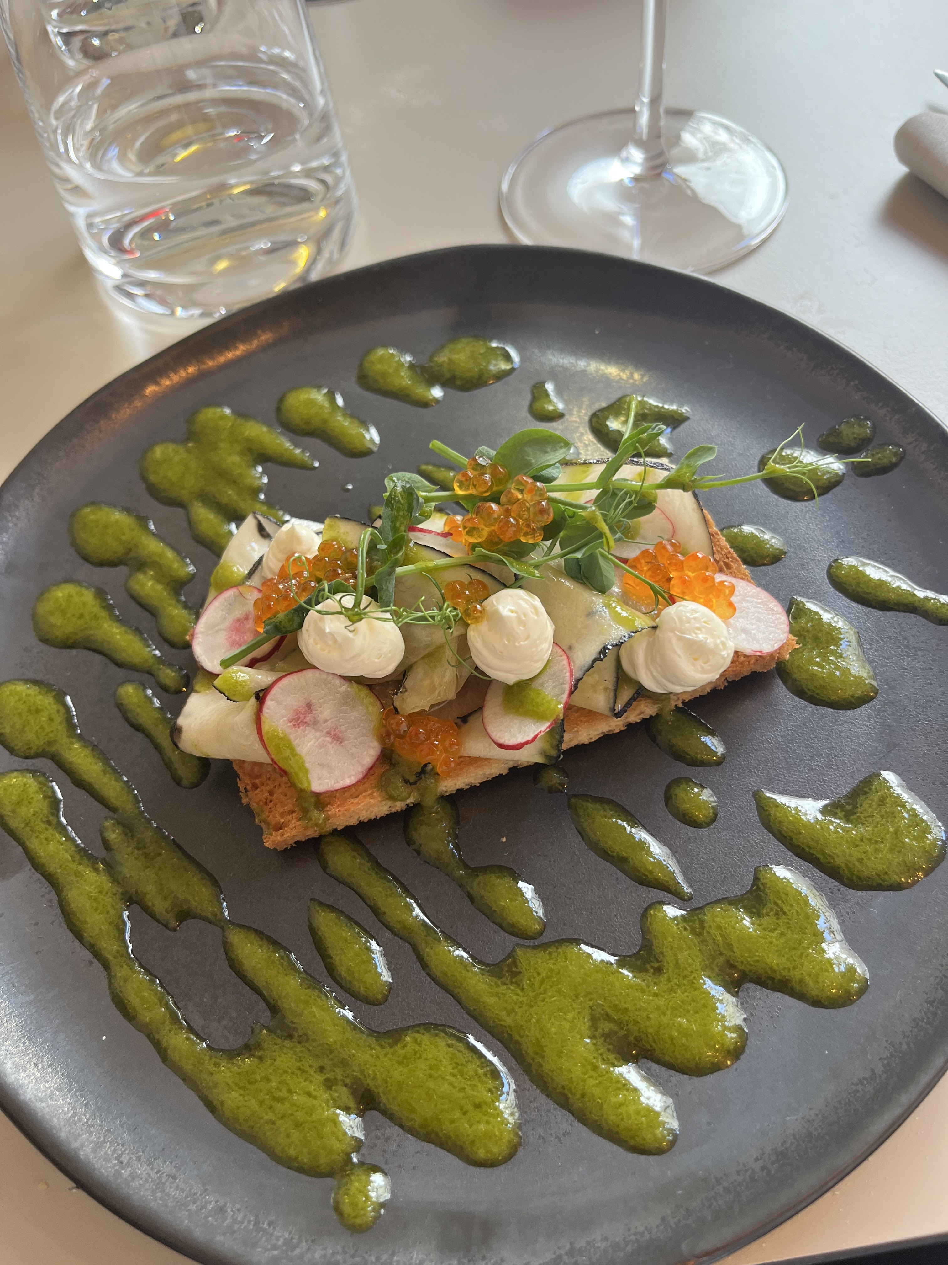 Une belle découverte ! Une décoration moderne et chaleureuse crée un cadre enchanteur, le service est attentif sans être intrusif, chaque plat est une œuvre d’art culinaire aussi délicieuse pour les papilles que pour les yeux; le chef flirte avec l’excellence, sa compagne, au service, exalte ses créations. Je recommande vivement ce restaurant