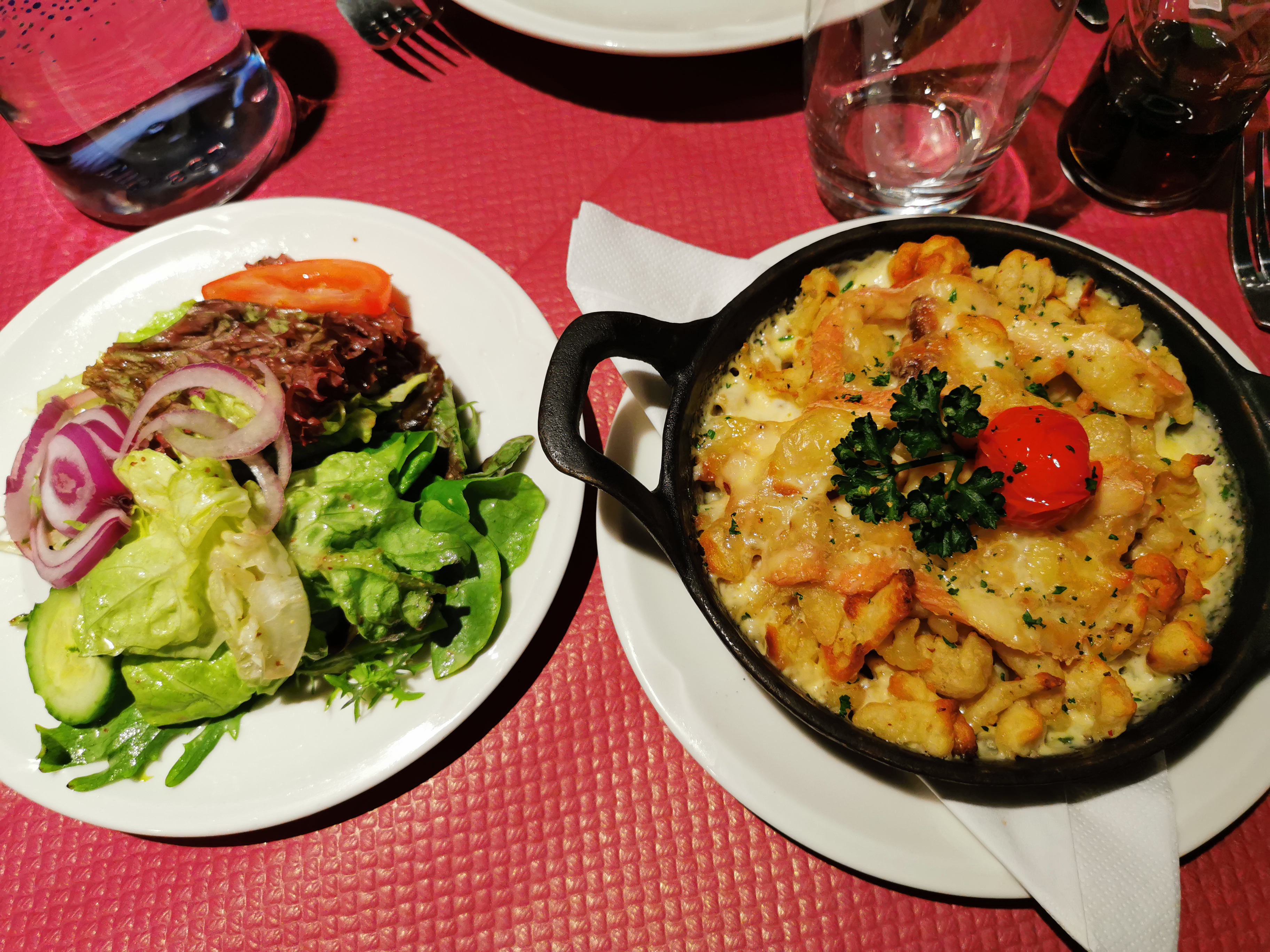 Menu resto en fête , repas correct , zéro féculents sur le plat principal , pas bien