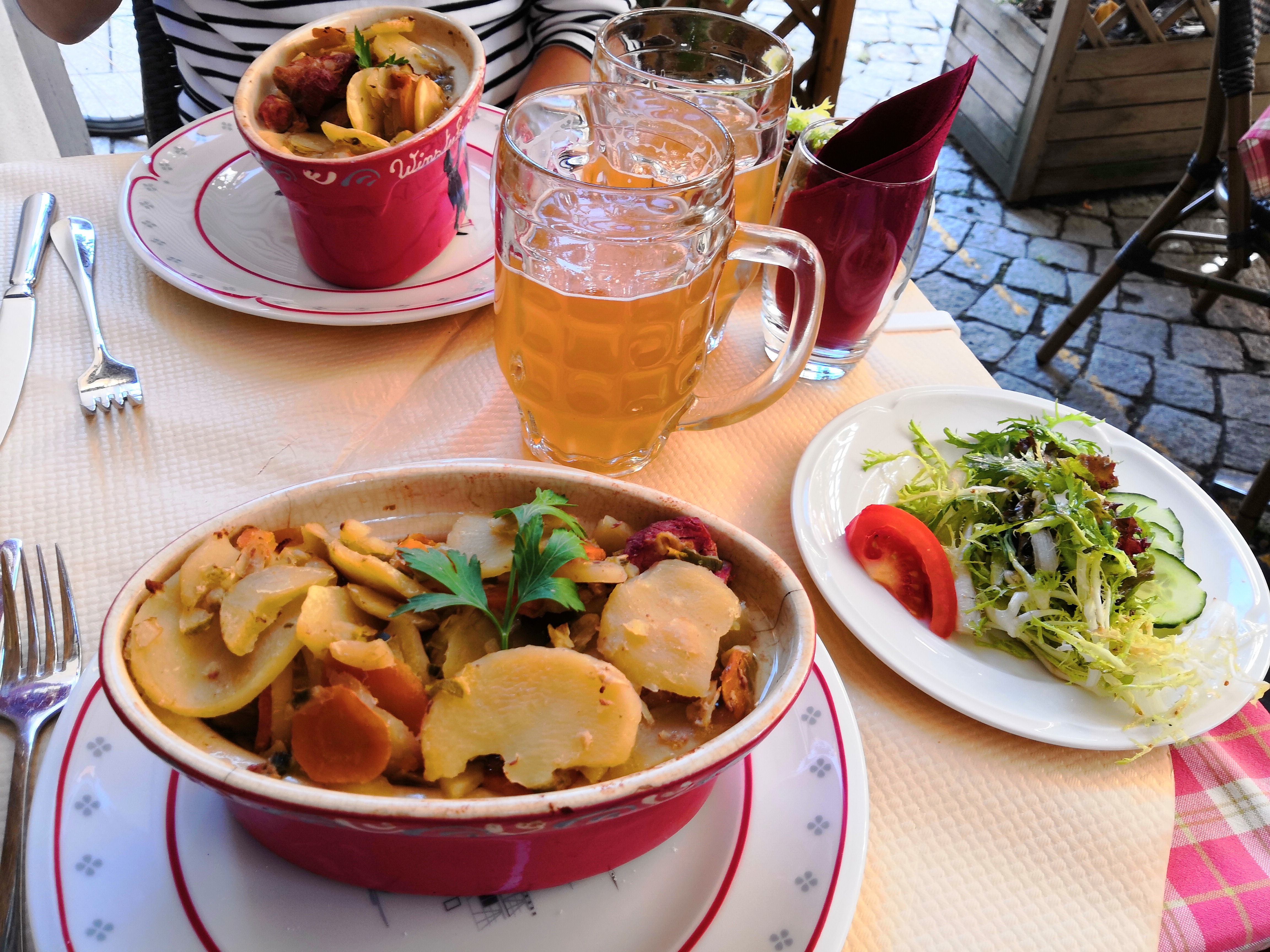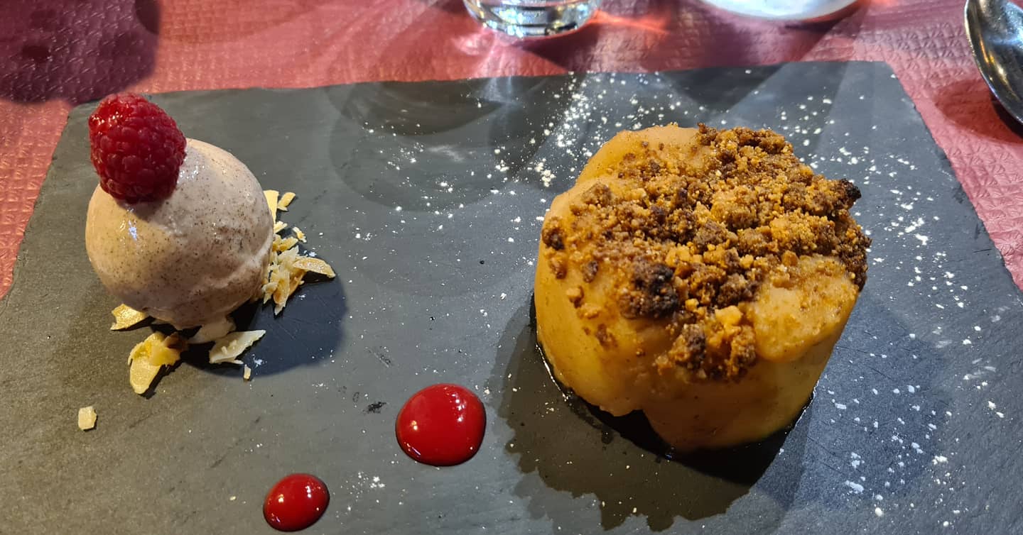 Le Strudel aux pommes était froid, et n'est que simplement des pommes cuites avec du crumble saupoudré dessus. La glace est quelconque, un gateau industriel sans goût planté dedans, trois coups de chantilly et un drôle de sirop étalé au centre. Le tout pour un peu plus de 7 euros. Ça pique. Dommage pour moi qui voulais découvrir une spécialité du coin !