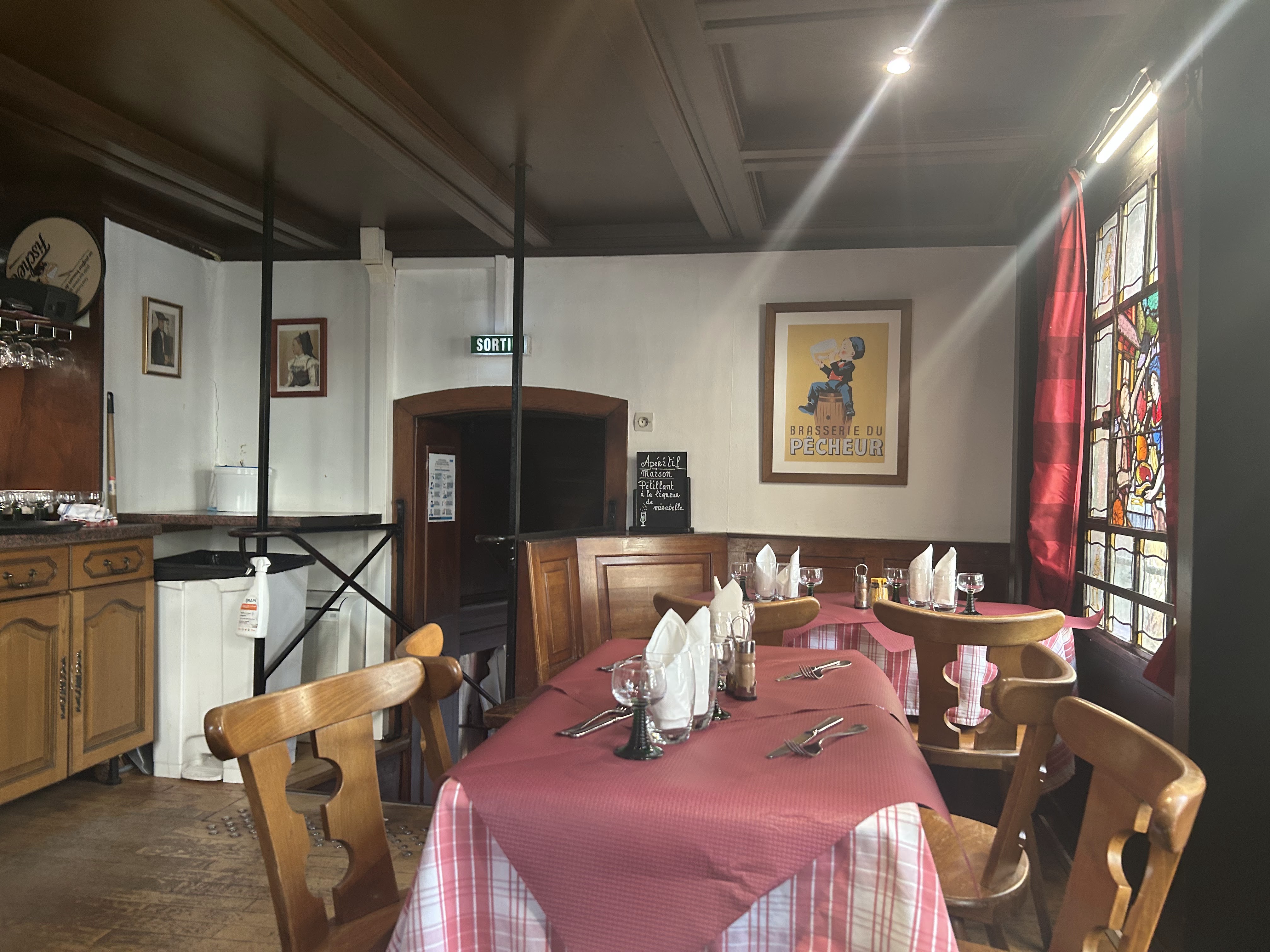 Nous avons déjeuner avec ma compagne ainsi que notre enfant de 13 mois, nous avons commandé deux tartes flambées(correct) ainsi que deux apéritifs,histoire de se mettre à l’heure alsacienne 😁 Nous avons demandé une chaise haute pour notre enfant, elle était dans un état tel, que nous avons préféré garder notre enfant sur nos genoux. notre notes était d’environ 30 € mais cela nous a tellement donné l’impression d’être des clients bâclés que nous avons écourté le repas ,pas de dessert et pas de café. Par rapport à d’autres qui ont prix des menus ou la carte. Faites-vous votre propre avis…