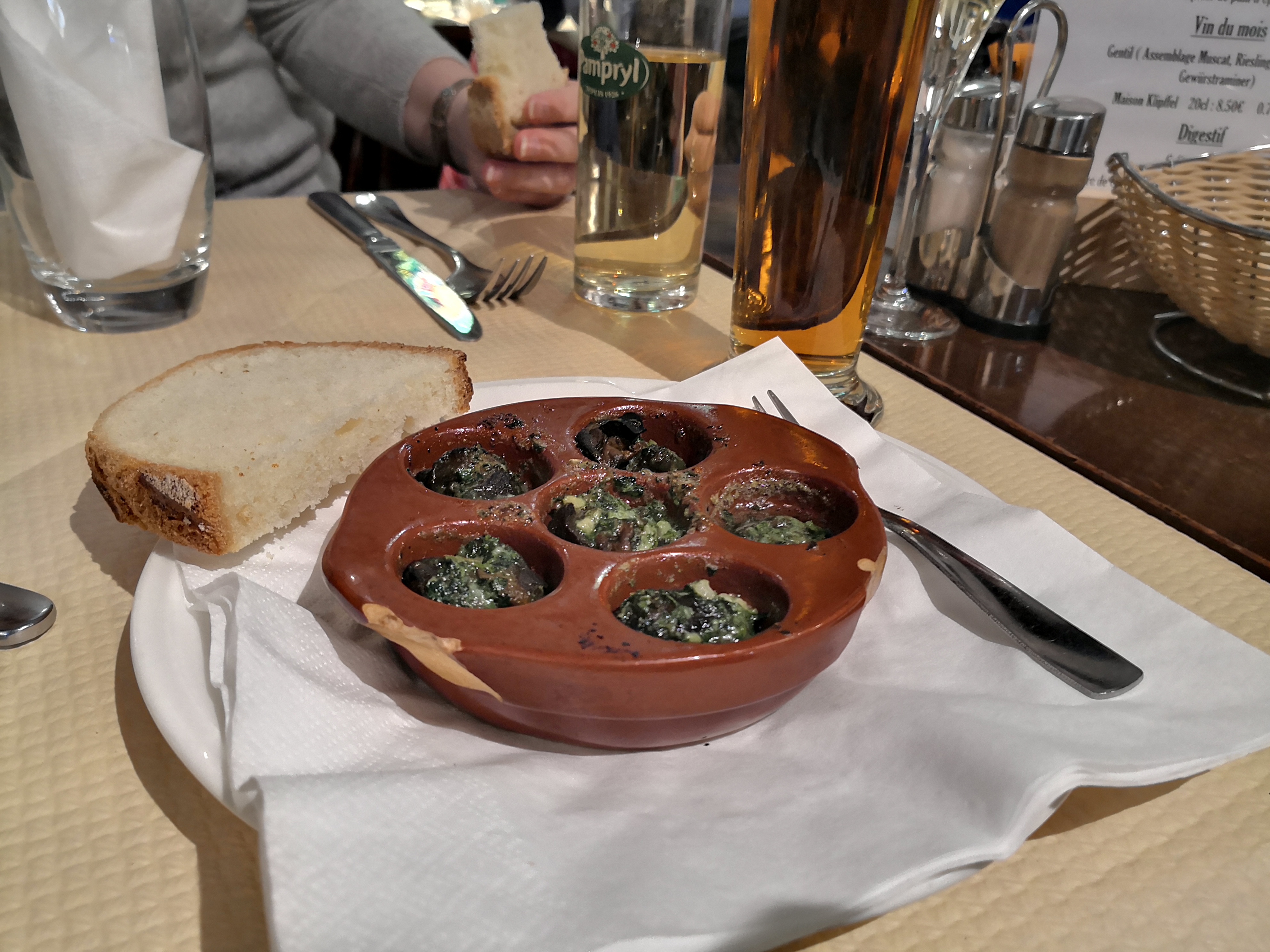 Pas top, ou plutôt sans prétentions, menu à 25 euros comprends 6 escargots, suivie d un plat de choucroute, est pour finir une tarte au myrtille. Bon pas exceptionnelle, pour ma part je ne recommence pas, ils y a beaucoup mieux sur Strasbourg