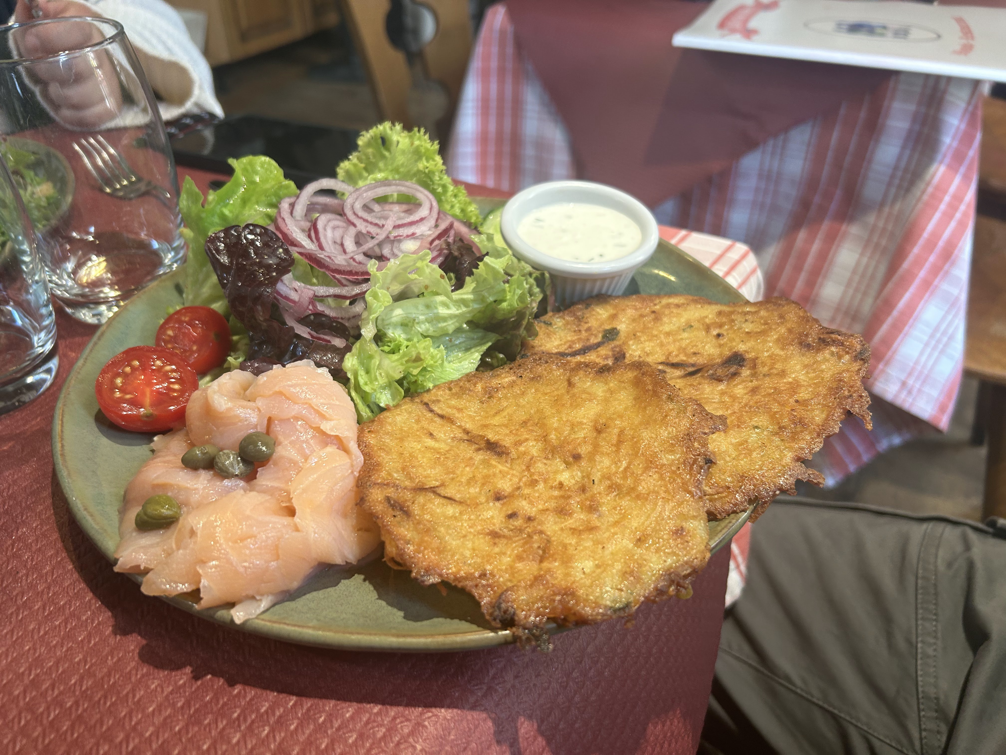 Déçue. C'est très cher pour ce que c'est, 7 euros 50 la forêt noire quand même. J'ai payé plus de 16 euros pour un saumon et des pâtes. Les pâtes étaient molles, le saumon mal cuit. C'est un attrape touristes. Cerise sur le gâteau, les serveurs sont désagréables, et vous avez l'impression de les déranger. Y'a mieux à Strasbourg !