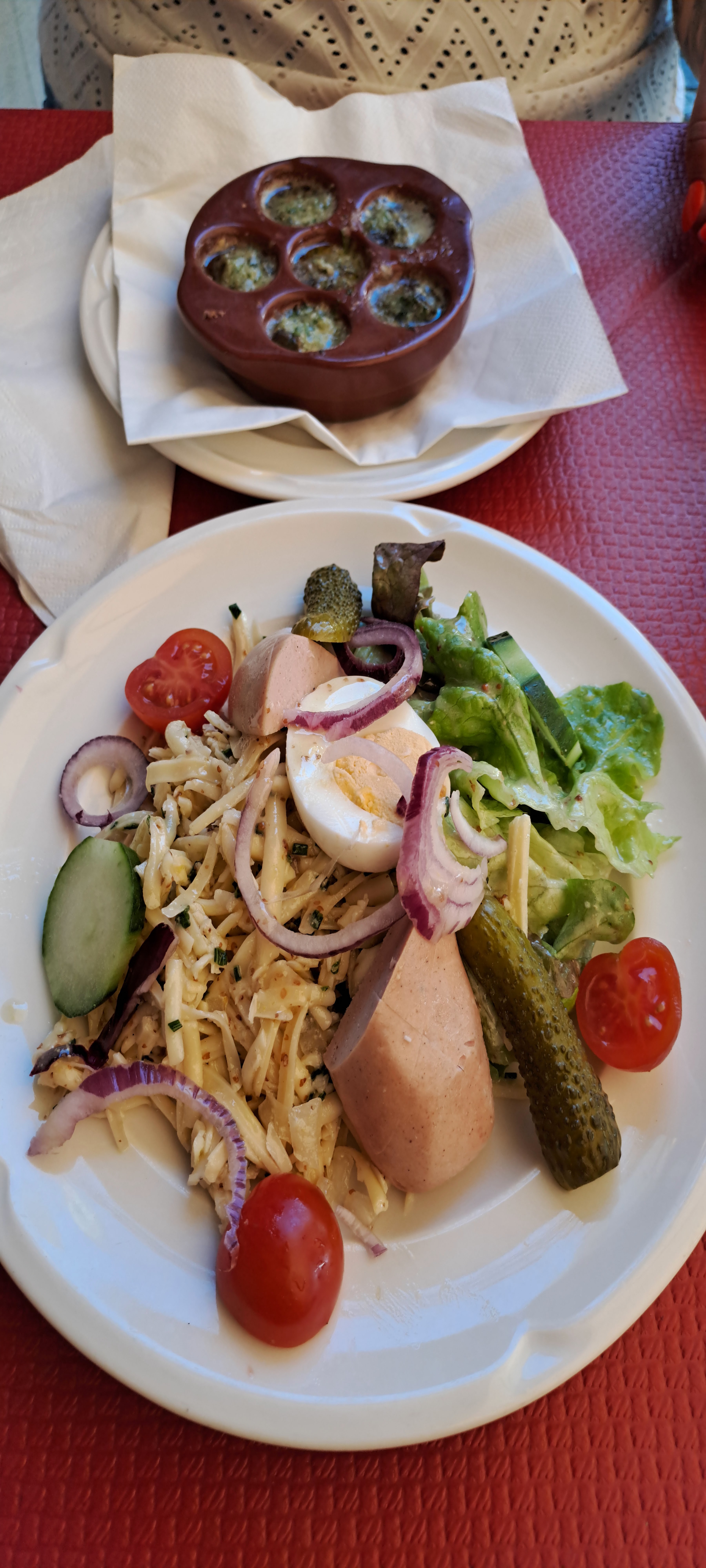 Salade strasbourgeoise,un peu sec,manque de vinaigrette,mais bon quand même 👍