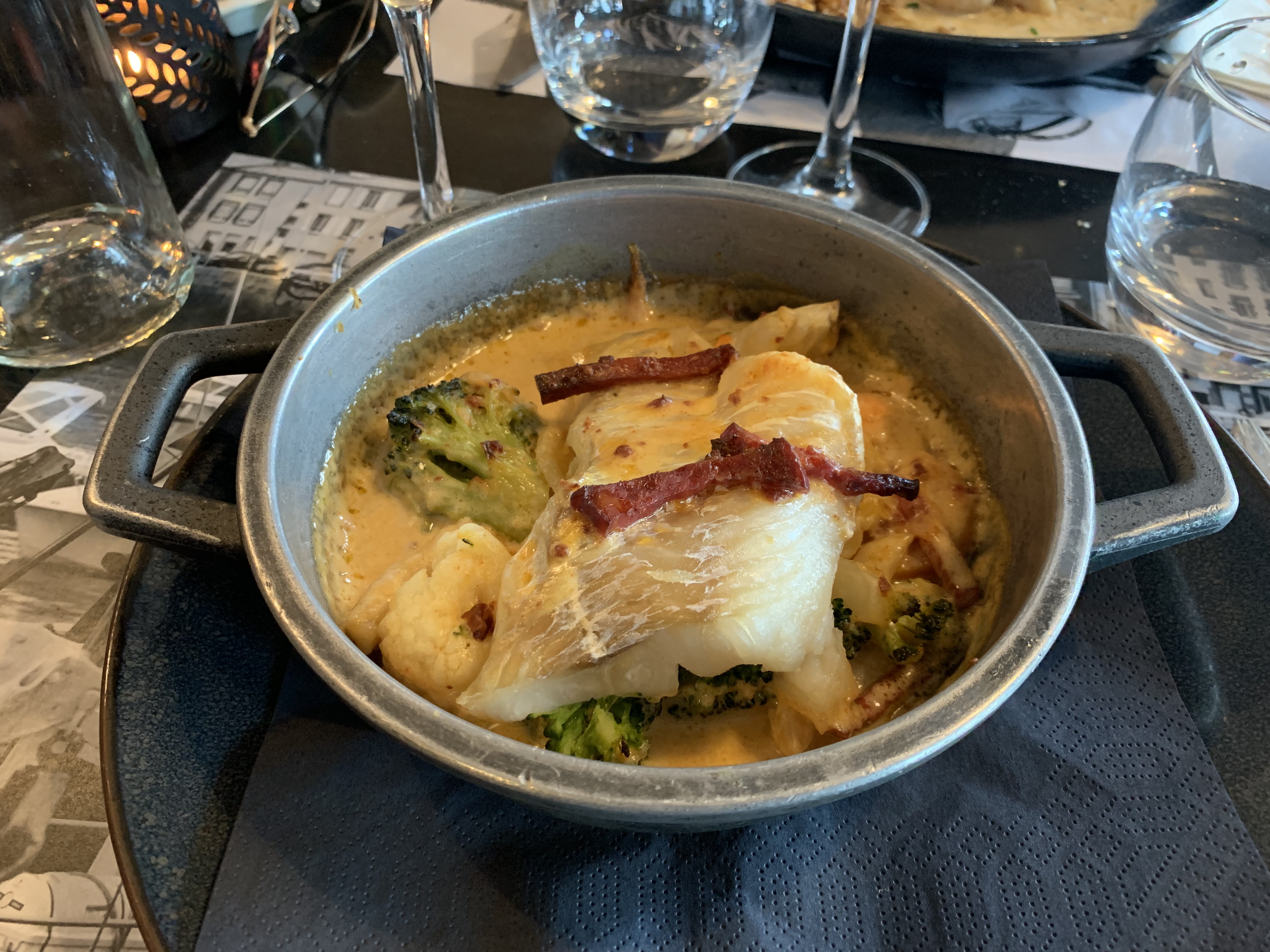 Correcte sans plus, Lotte pas cuite, cabillaud au sauce chorizo sans saveur. Au moment de notre venu sérieux problème de chauffage (janvier2024).
