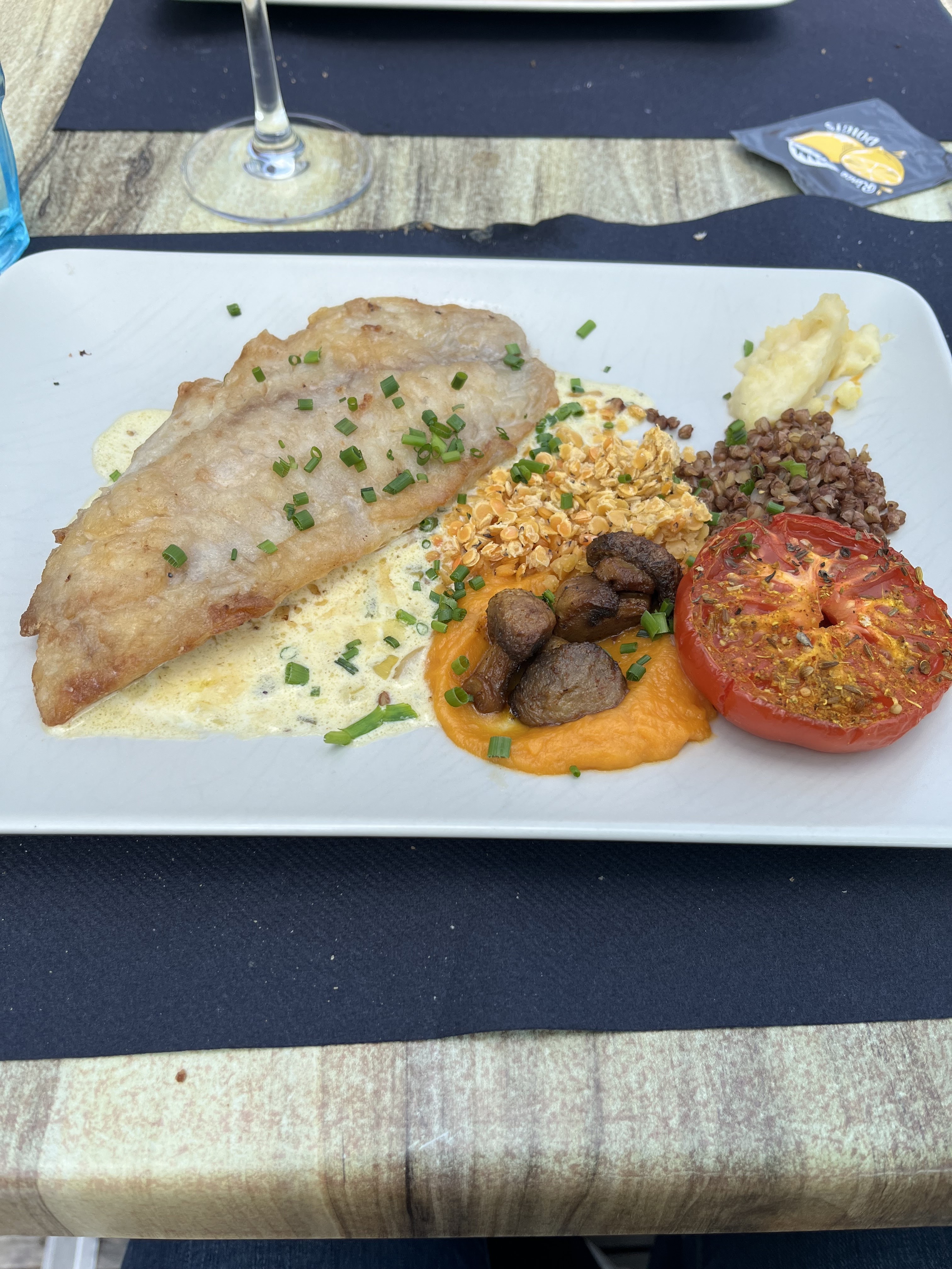 Installé en terrasse et servit gentiment et avec le sourire ! Les saint Jacques étaient excellentes