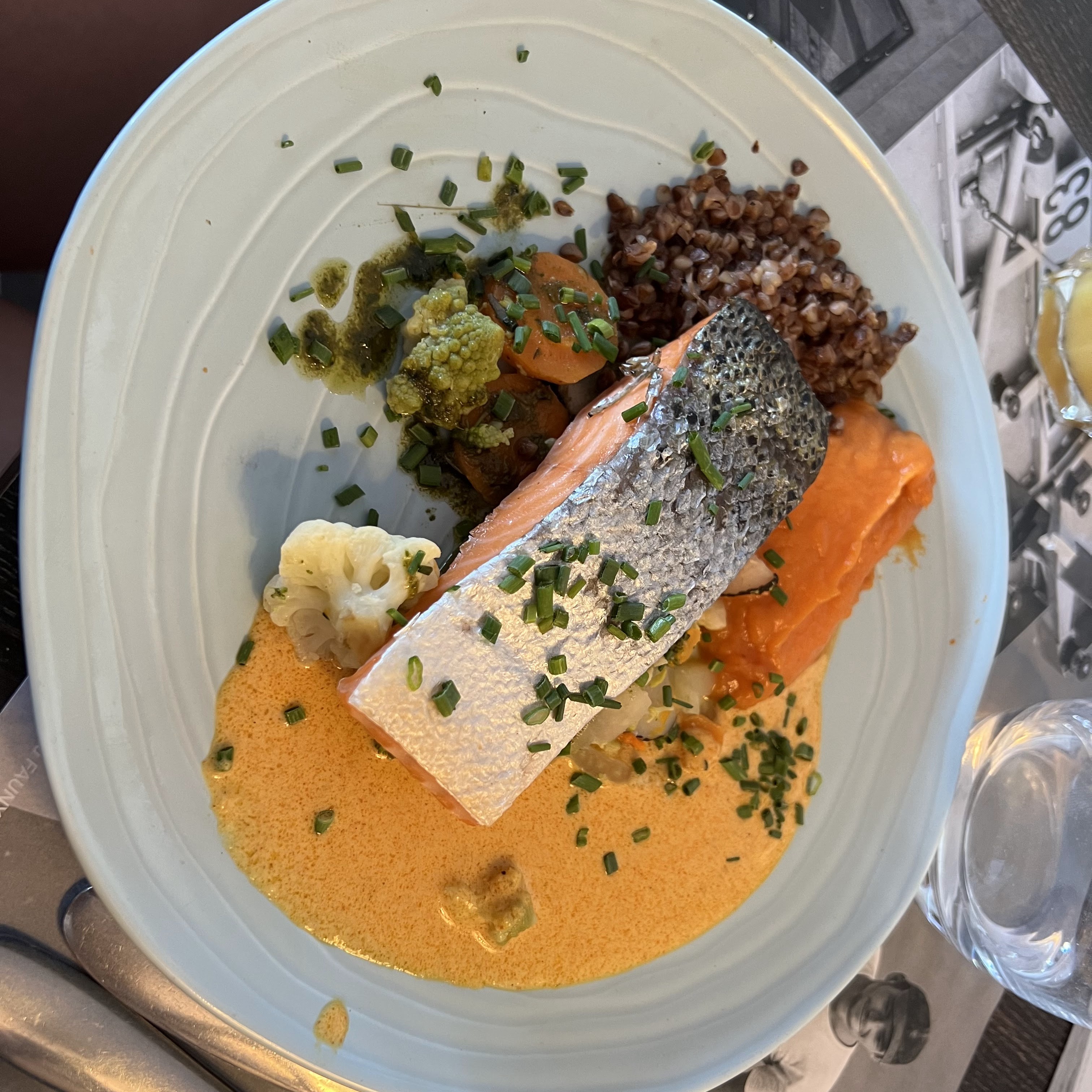 Le saumon fumé tiède avec petits légumes..un régal ! Service souriant et très efficace en ce soir de semaine assez fréquenté - Bravo, bonne continuation 🙂 et mention spéciale à Sami qui nous a accueillis avec tant de bonne humeur et de petites attentions!