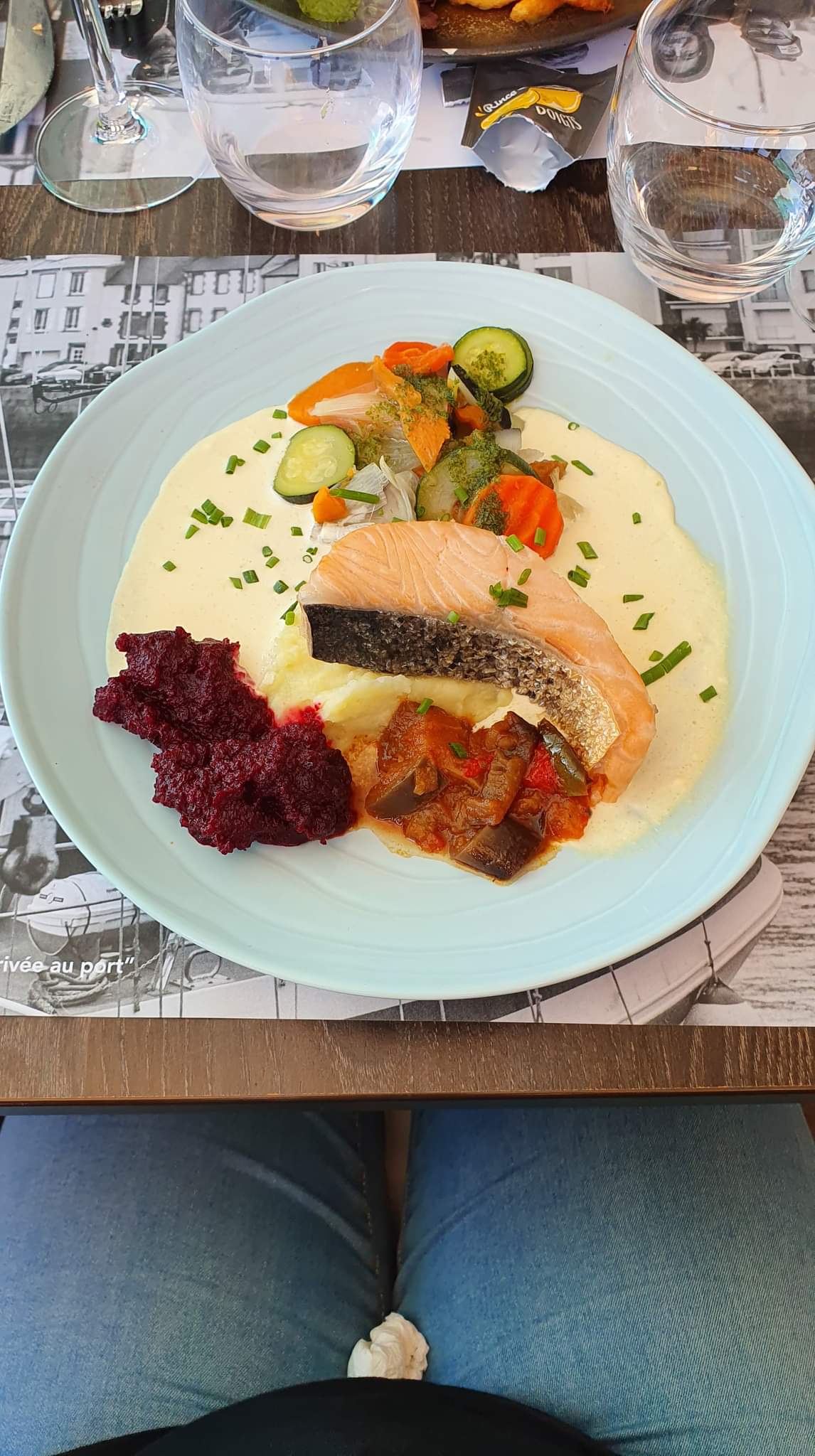 Magnifique vue sur le port. Cuisine très bien. La choucroute est bonne, le haddock est remplacé par du saumon frais fumé et cela change. Le cabillaud au chorizo pourrait avoir un peu plus de chorizo mais c'est très bon. Je conseille la pomme melba que j'ai adorée.