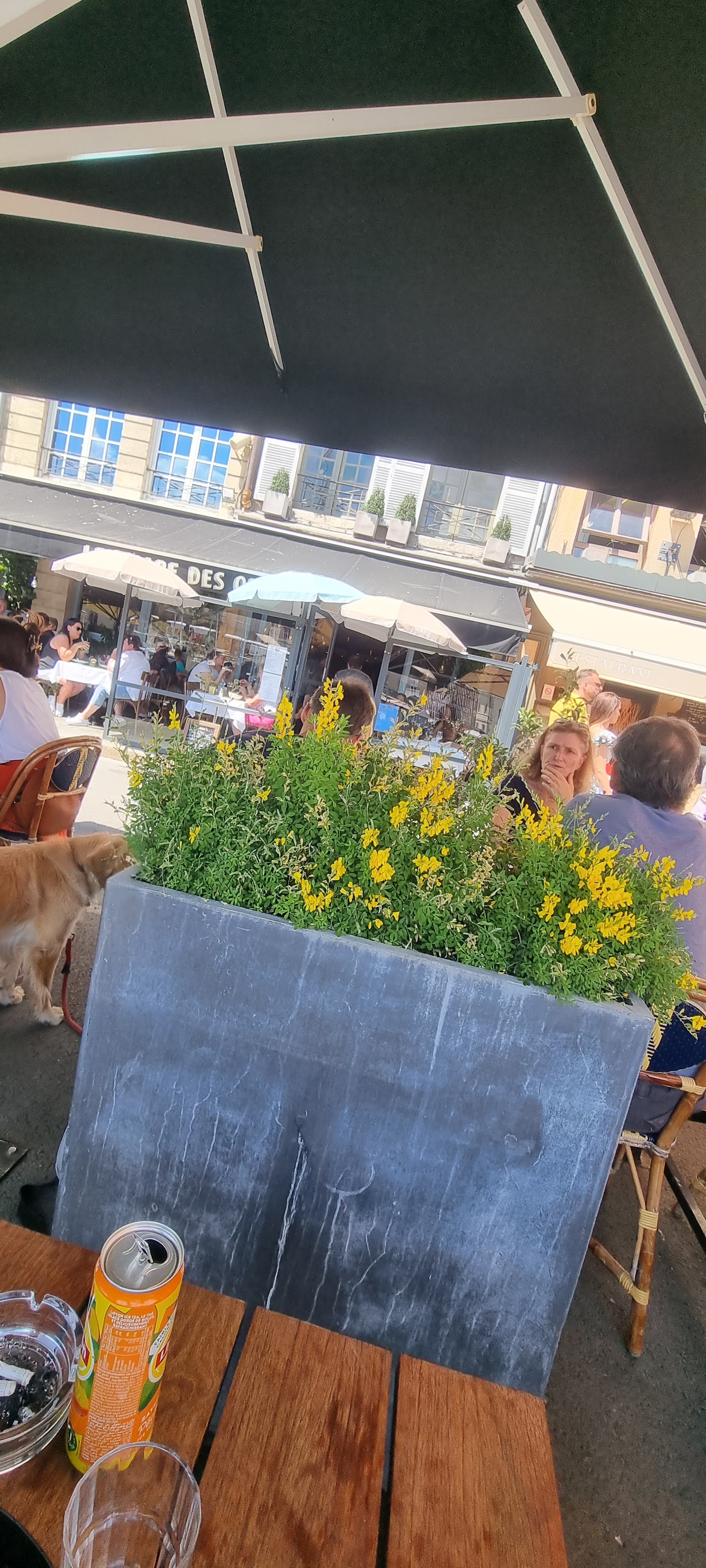 Merci pour ce déjeuner en terrasse avec un soleil magnifique. Vous nous avez acceptés avec nos 3 toutous dont 2 gros avec une table d angle pour ne déranger personne. Vous chouchoutez vos clients ne changez rien !!! Merci pour votre accueil, gentillesse et l entrecôte ! Helene et Jean René