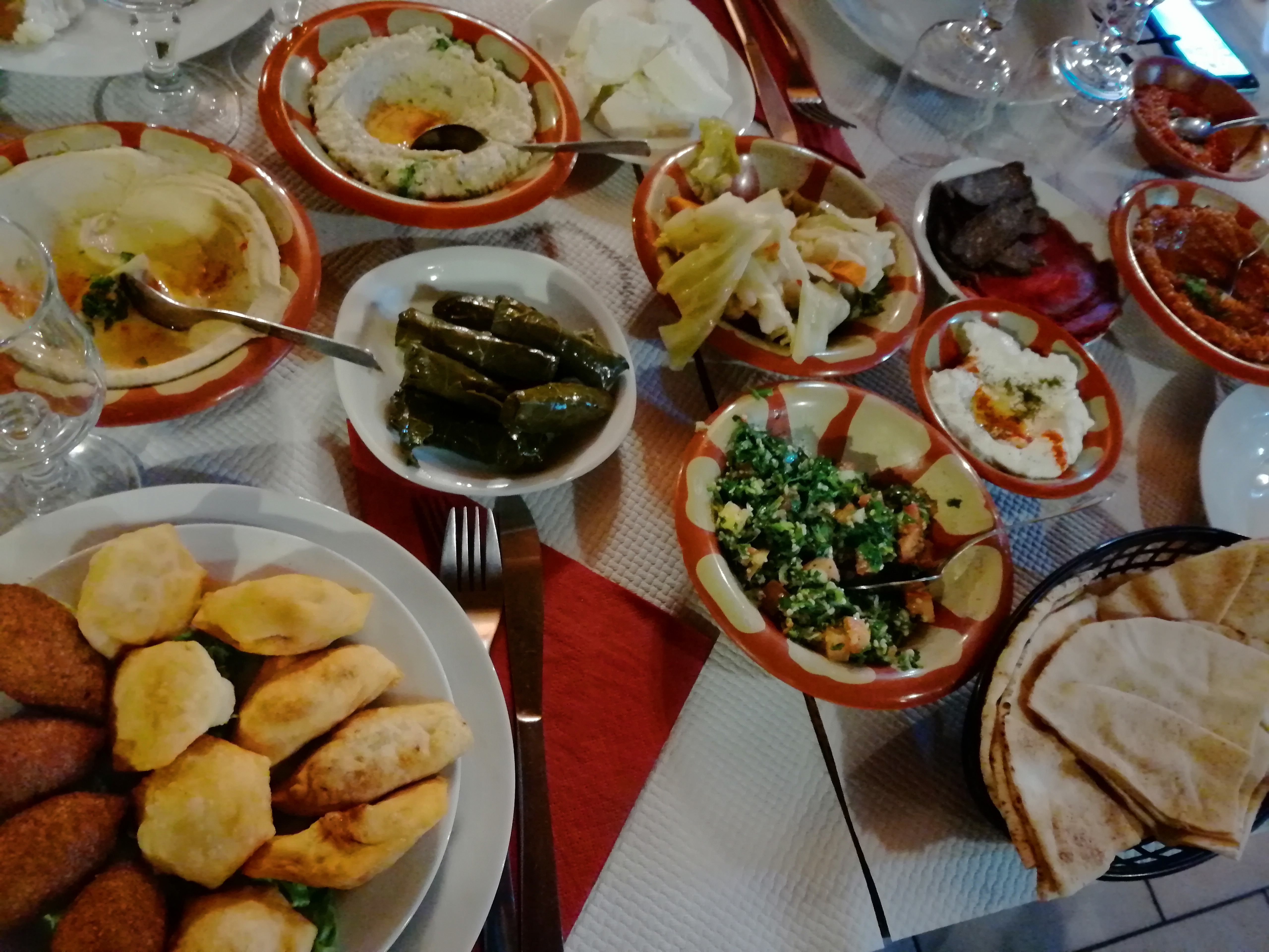 Le mezze est parfait, tout est très bons, en plat chaud on avait pris des grillades. Des bon vins, Bref, très bon soirée. Un peu serré, le resto est petit mais très convivial !