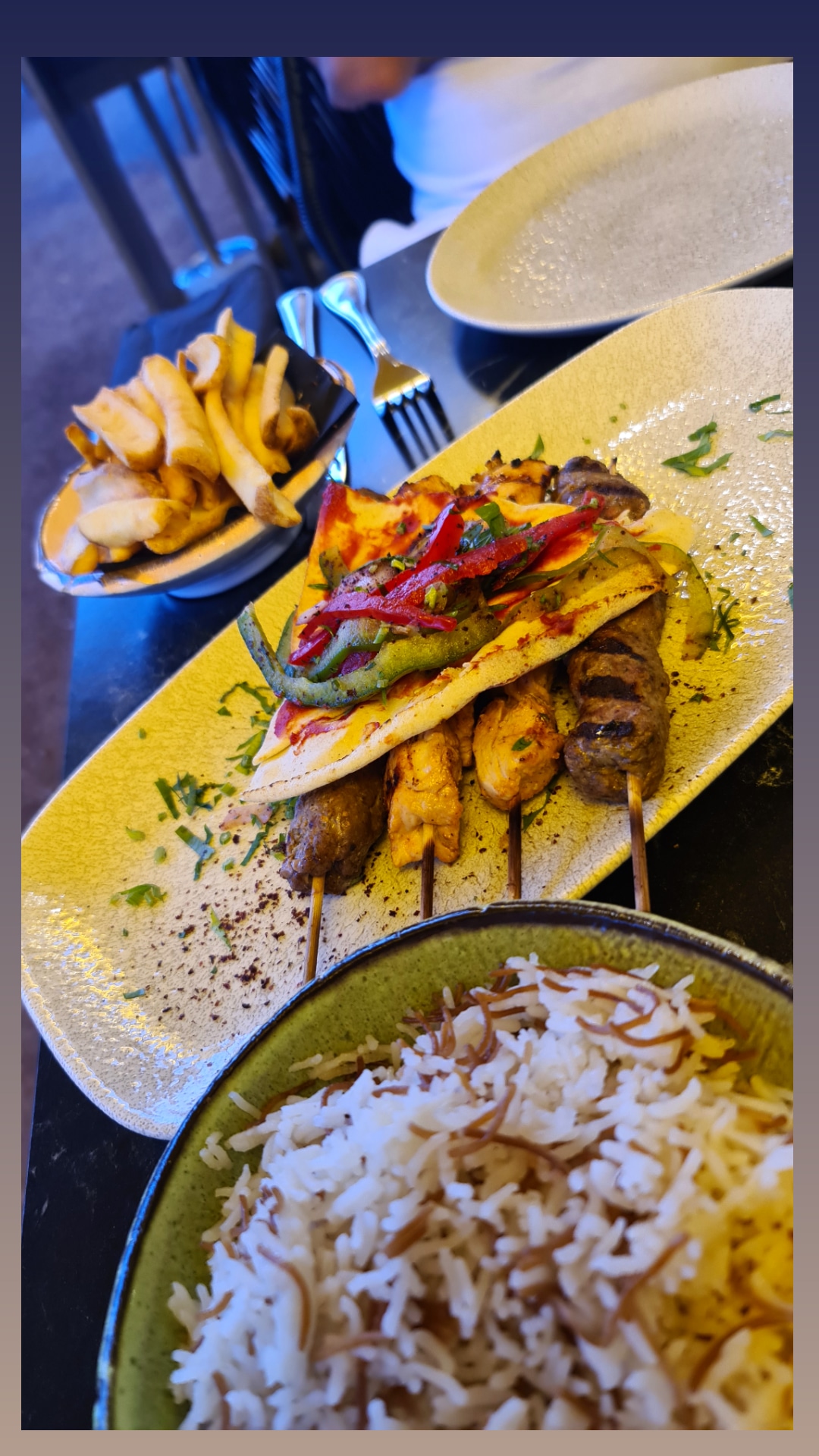 Chich-Taouk , frittes , riz lentilles très bon servie assez rapidement et très serviables.