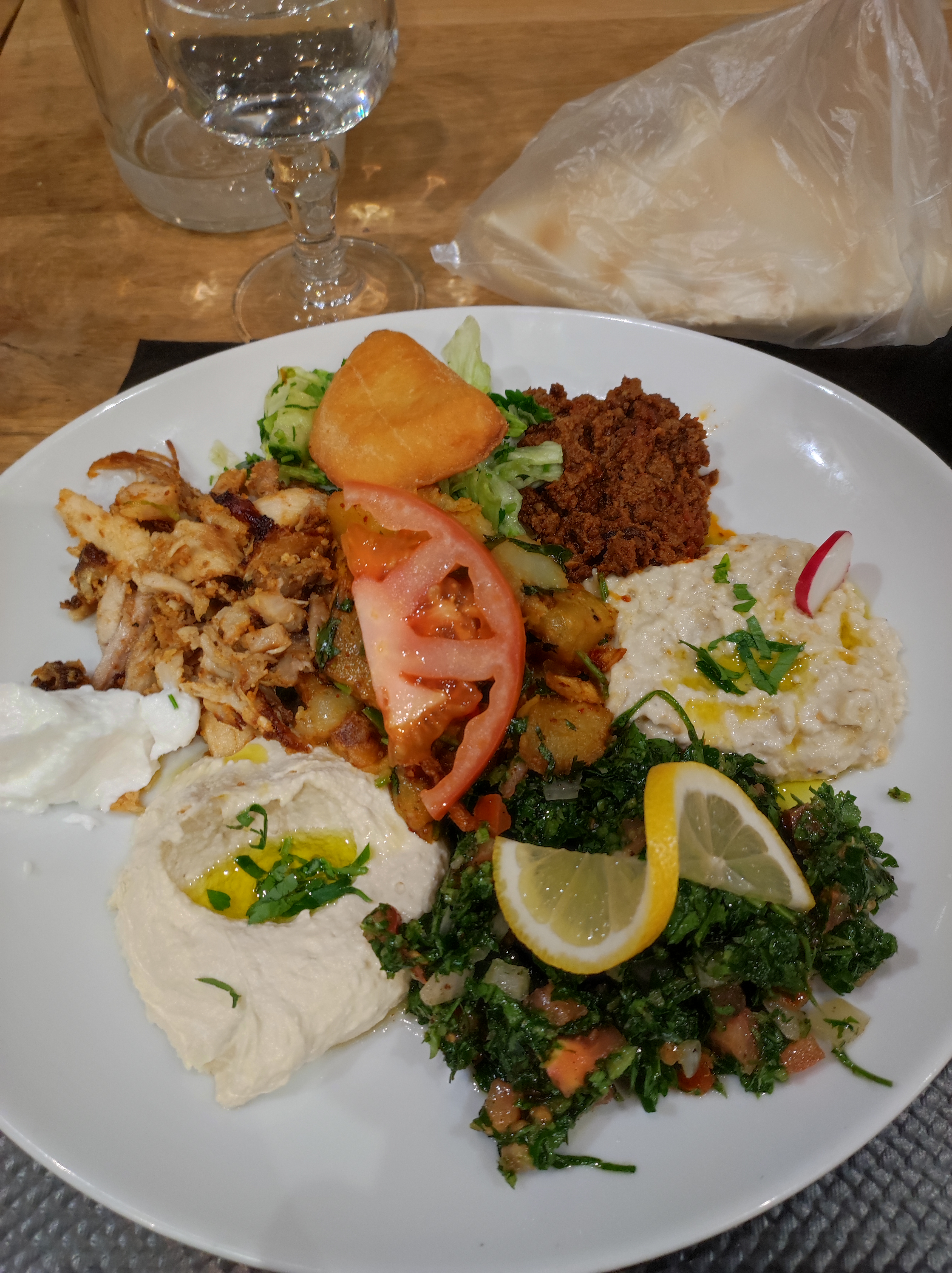 Pas loin de notre hôtel nous avions découvert ce resto avec une bonne cuisine libanaise et prix très correct. Très belle découverte, l'assiette était copieuse et le goût délicieux