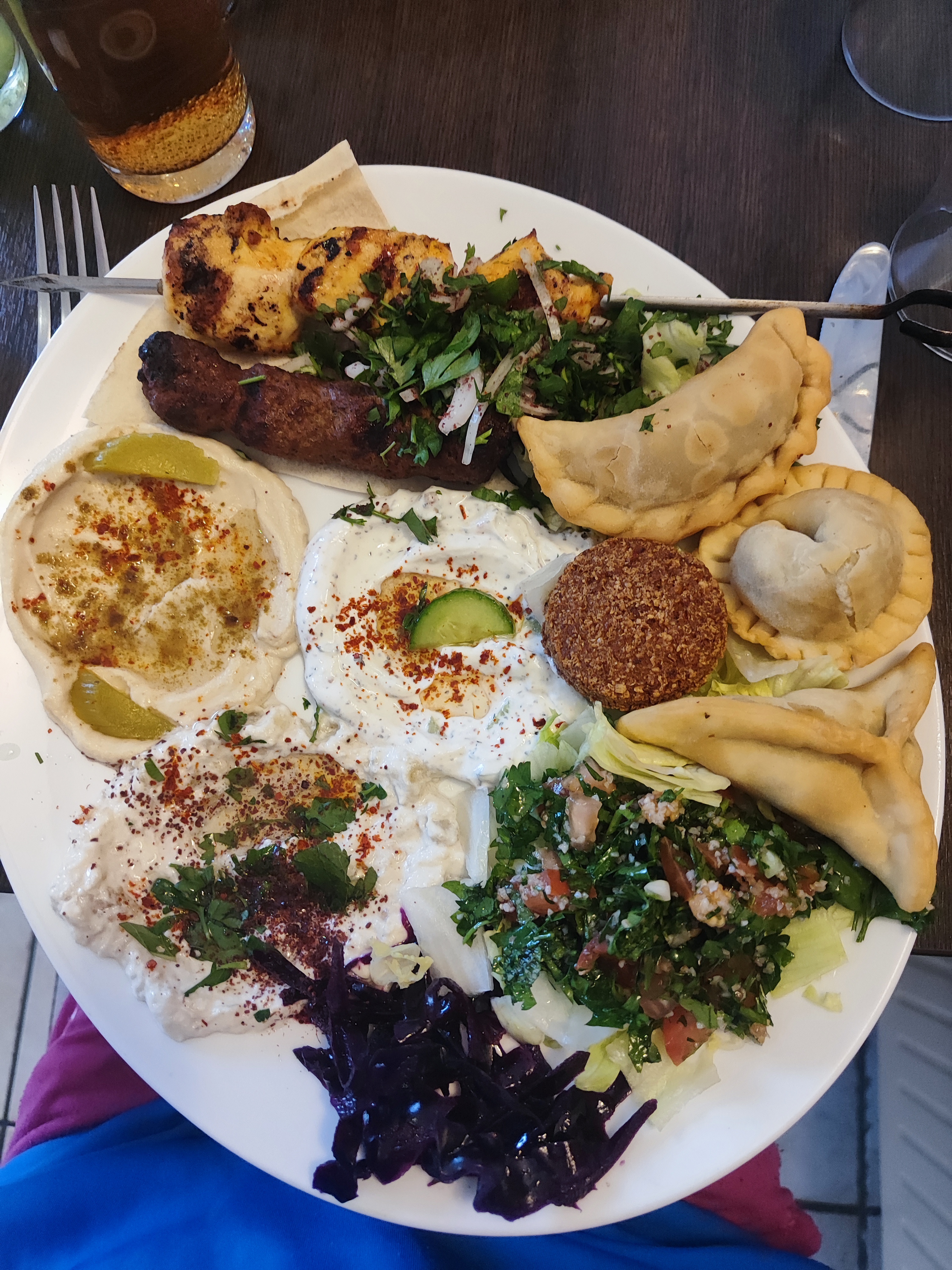 L'un des meilleurs restaurants que je connaisse ! Nous étions deux et nous avons commandé deux assiettes mixtes grillades, une assiette entrée et enfin une assiette dessert avec des spécialités libanaises mixtes. Tout, vraiment TOUT, était incroyablement délicieux ! La viande était parfaitement grillée, super juteuse et moelleuse. Les propriétaires étaient super sympas et serviables ; J'ai rarement vu des propriétaires aussi hospitaliers, je ne saurais trop les féliciter ! Dans l’ensemble, tout était super ! Je reviendrais d'Allemagne (à 2,5 heures) juste pour pouvoir manger ici ! Merci beaucoup et à bientôt !!