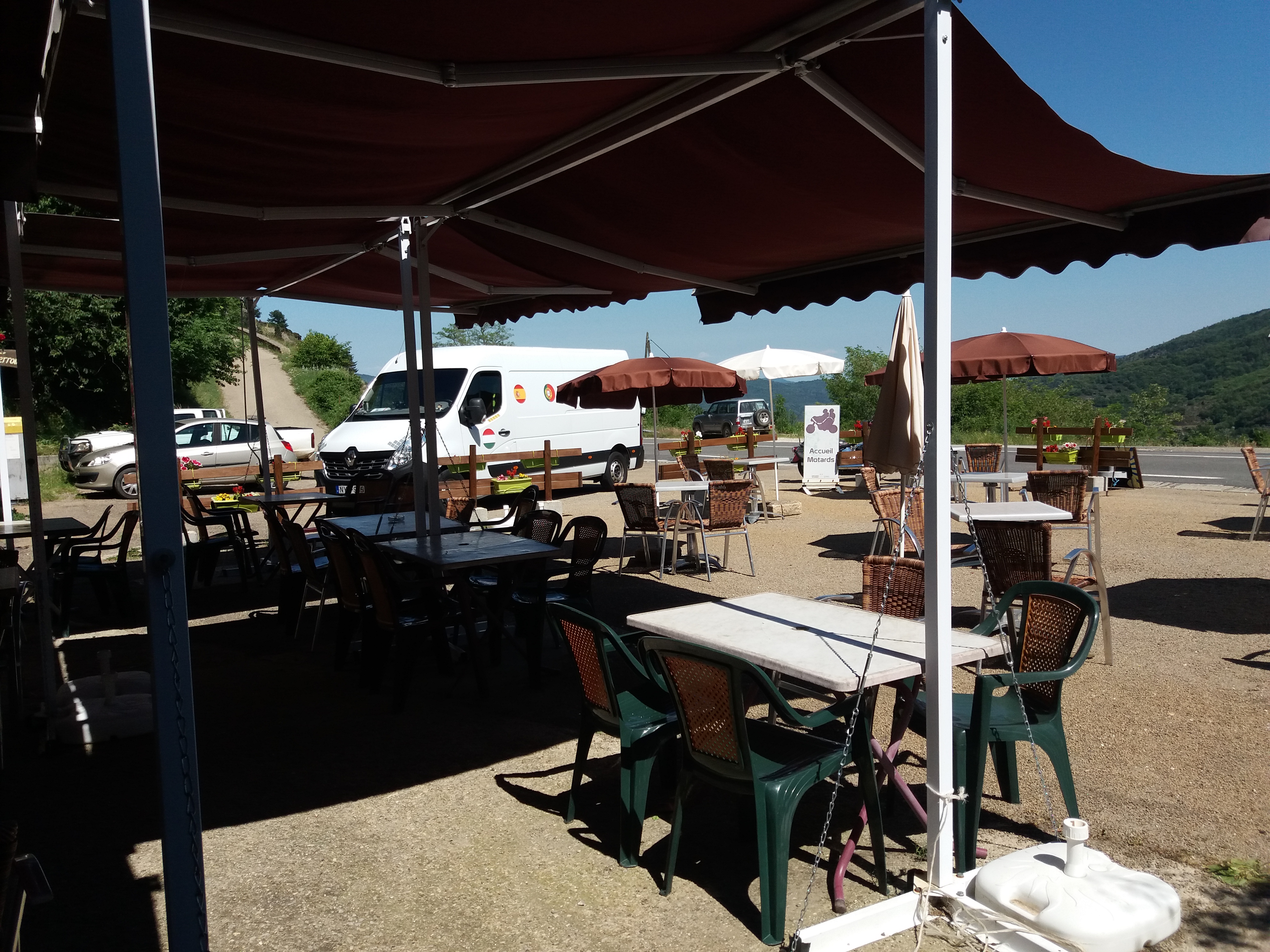 Súper acceuil au motard tres sympa bien expose et súper pour un petit arret en balade moto un grand merci aux patrons et a bientot n hezitez pas vous aussi arretevez dans ce charmant endroit vous seres ravis la vuelta est splendide les repas au top et la terrasse au soleil ou a l ombre a bientot