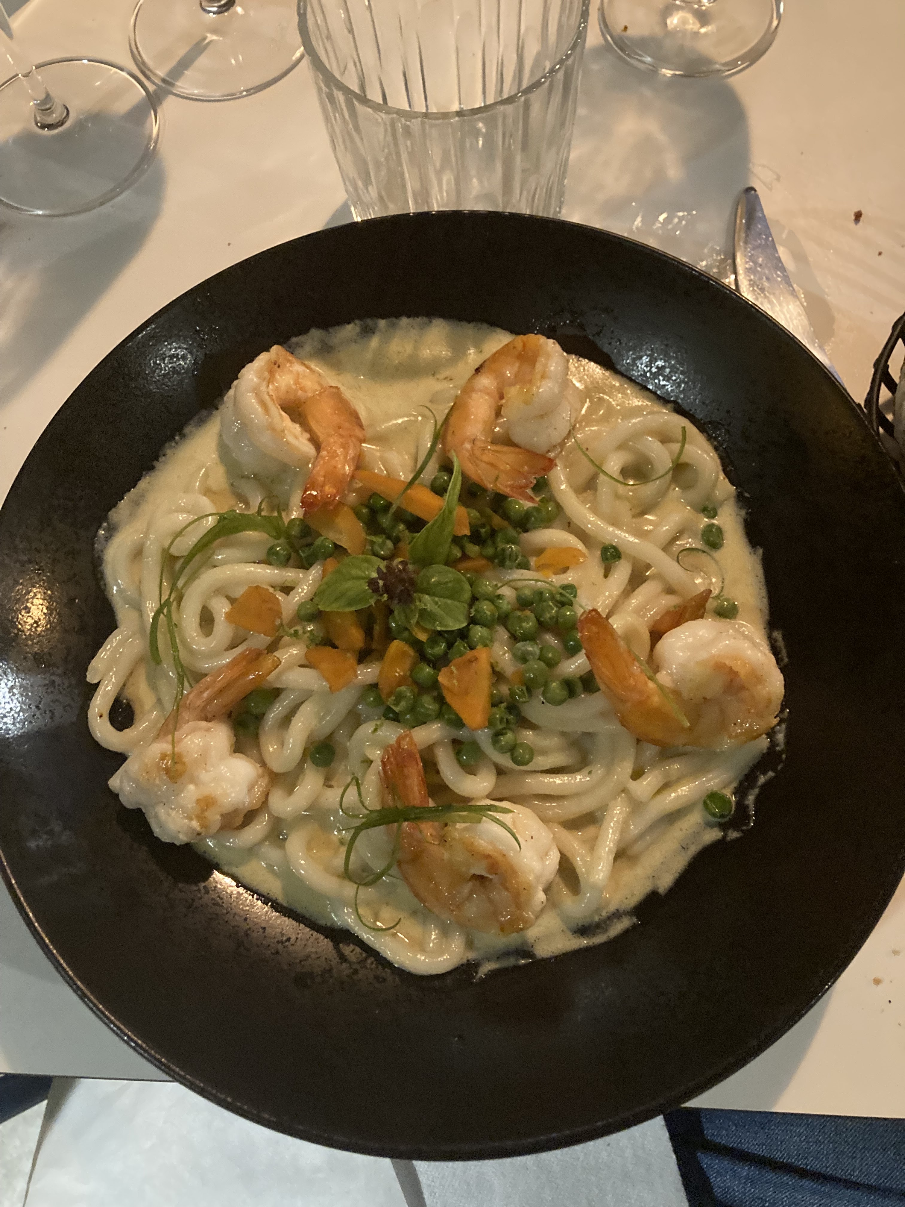 Un plat à 23 euros pour 3 crevettes et 5 pates ça fait cher le plat.Je n'irai plus bien sûr
