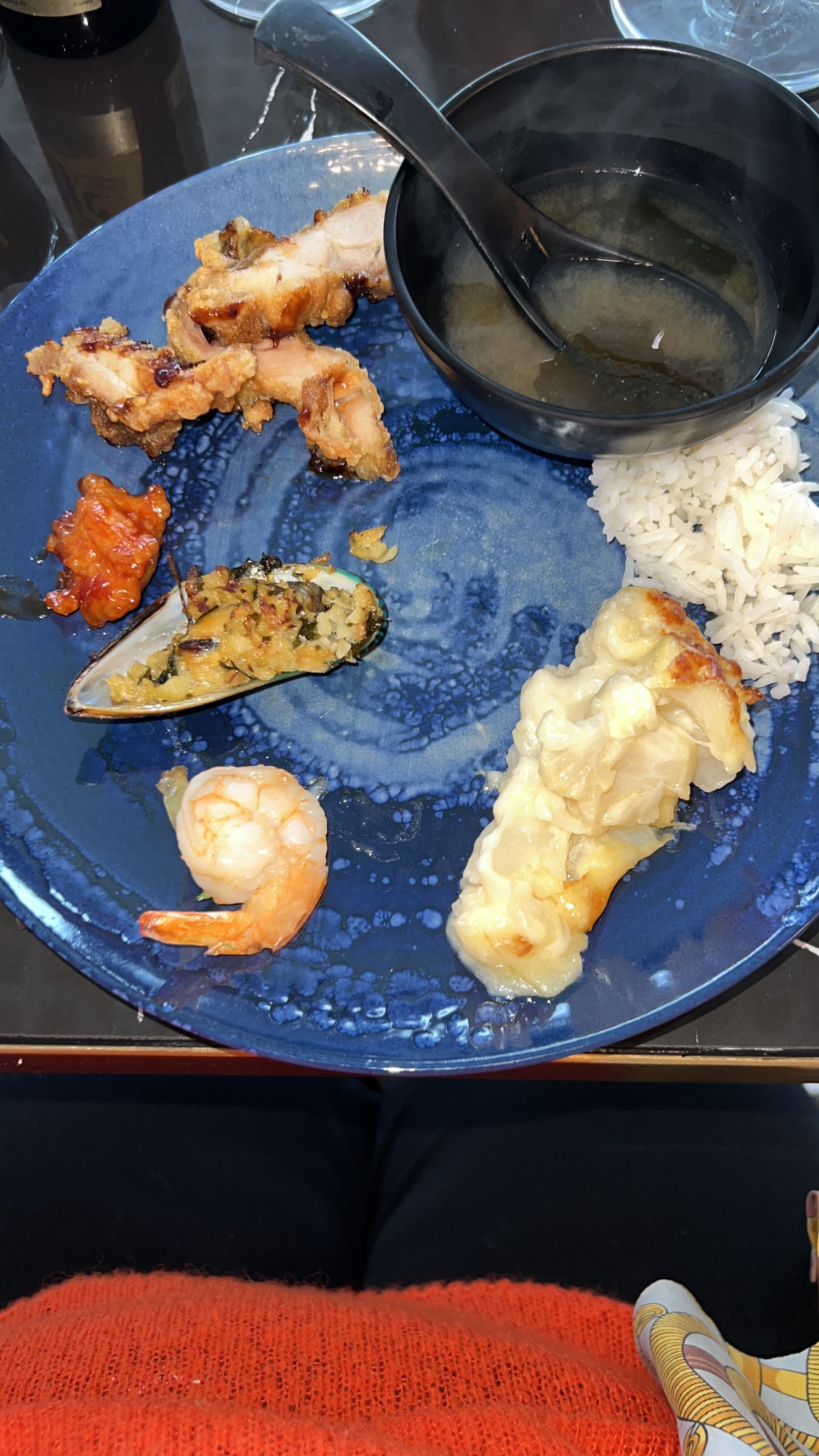 Un très bon buffet à volonté avec sushis, plats asiatiques mais surtout des plats au grill servis par un robot. Les enfants adorent.