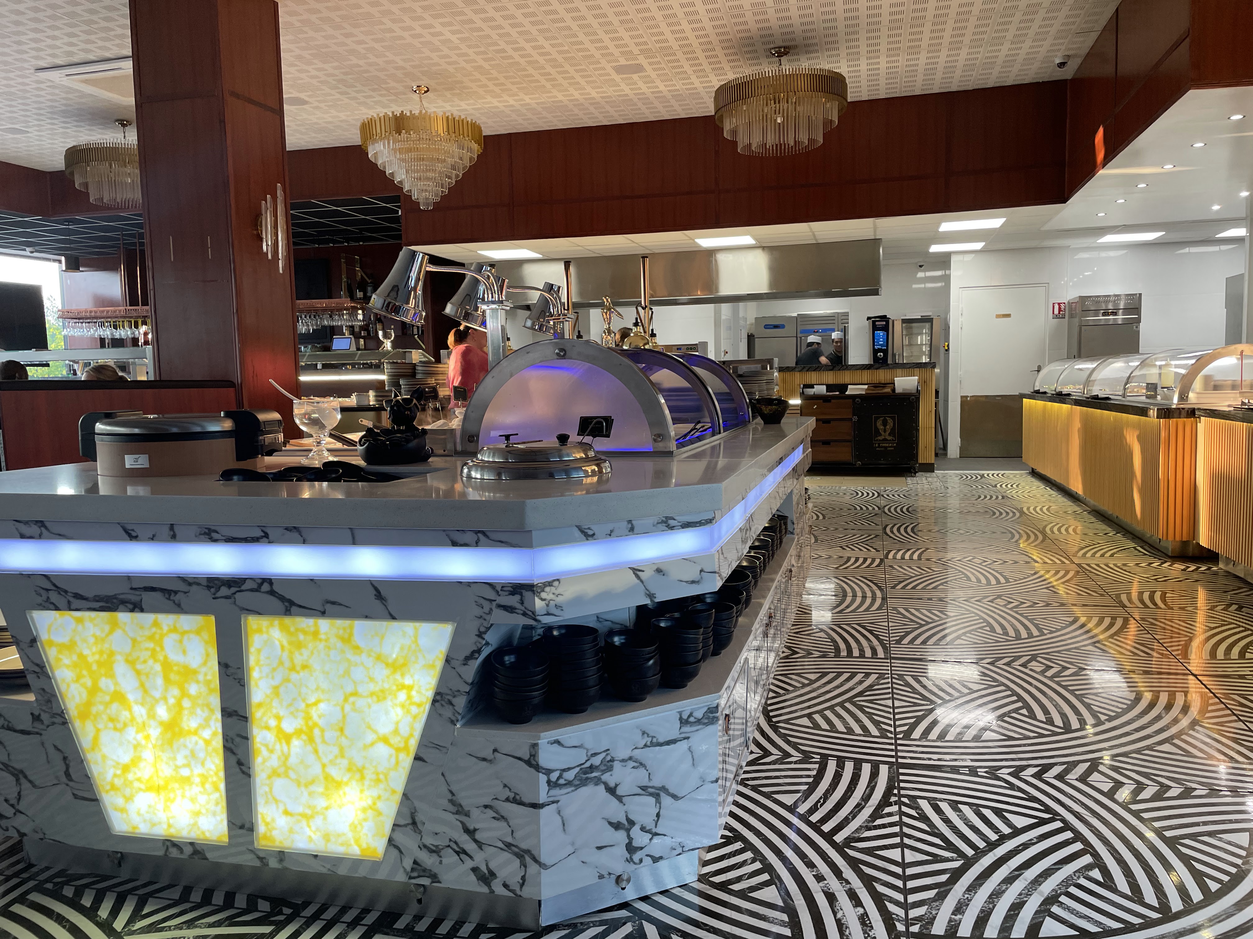 Un buffet qui change ! Vous pourrez y manger autant des huitres, de la carbonate flamande, des sushis ou encore une entrecôte ! La nourriture est assez varié et donne envie de tout goûter 🤤 L'endroit mérite d'être connu et plus fréquenté... On voit que c'est le début, malheureusement quelques plats sont un peu trop cuit dû au manque de fréquentation je pense. Vous pourrez apprécier d'être servis par un robot pour les grillades 🤖 une animation rigolote.