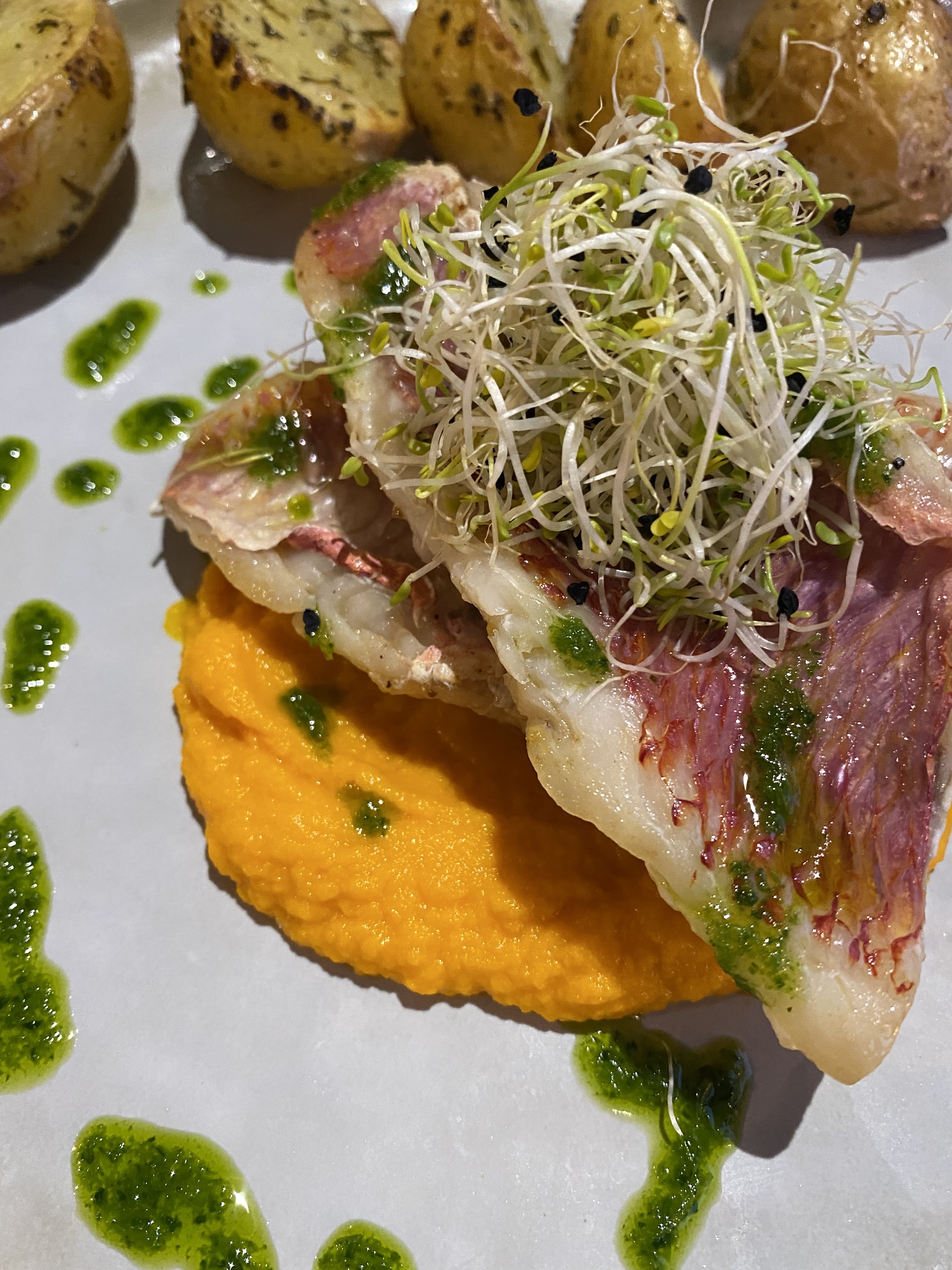 Nourriture, service et vin vraiment excellents. Cela aurait été 5 étoiles, mais déçu par le pain plutôt ordinaire et l'huile d'olive standard industrielle (dommage car la Corse possède d'excellentes huiles EV). J'y retournerais sans hésiter et un petit réglage des détails et Le Phoenix serait parfait.