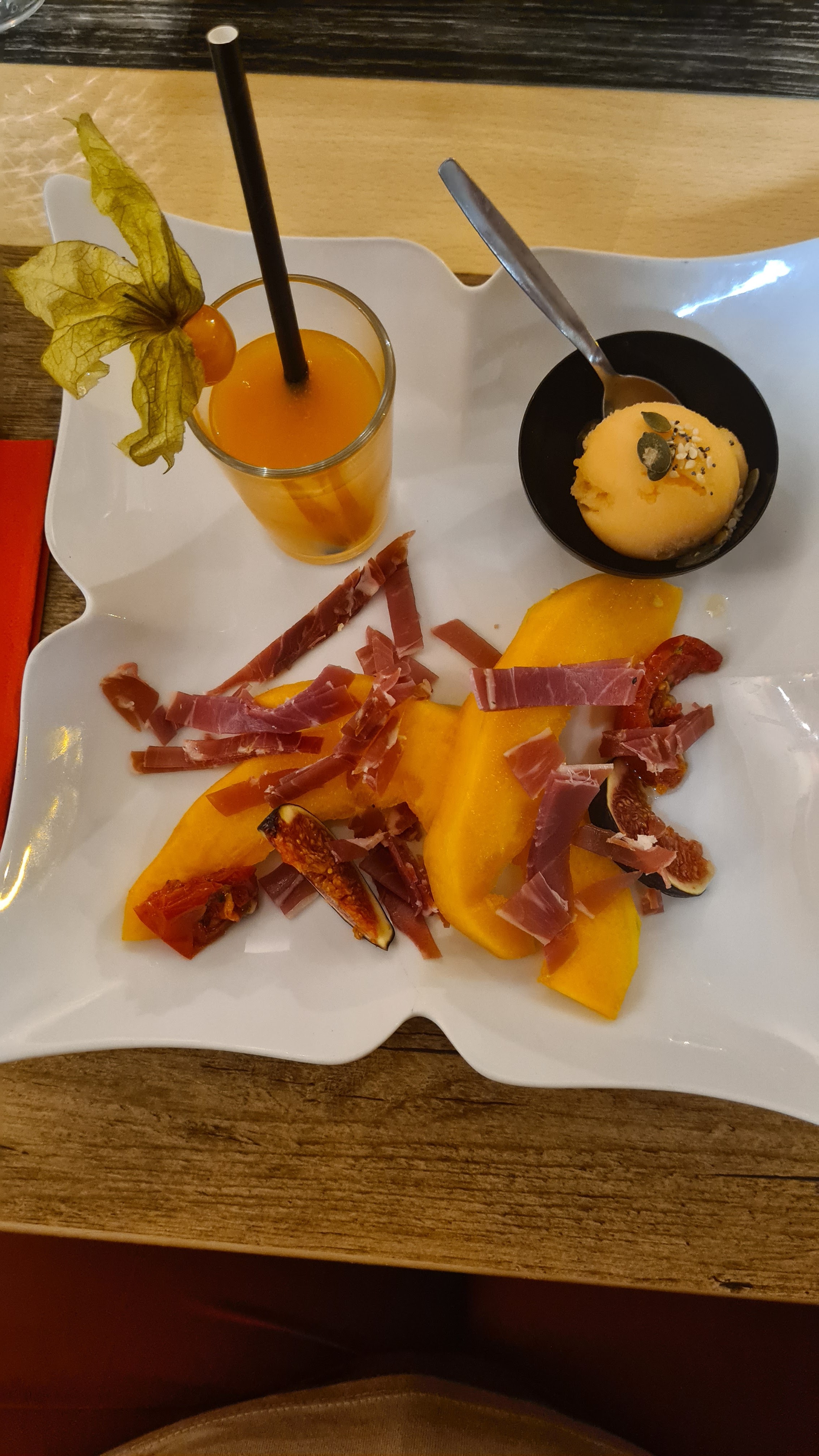 Restaurant très sympa nous étions 9 servis tous en même temps, personnels très sympathiques,l entrée au saumon avec le sorbet surprise une vraie tuerie prix raisonnable