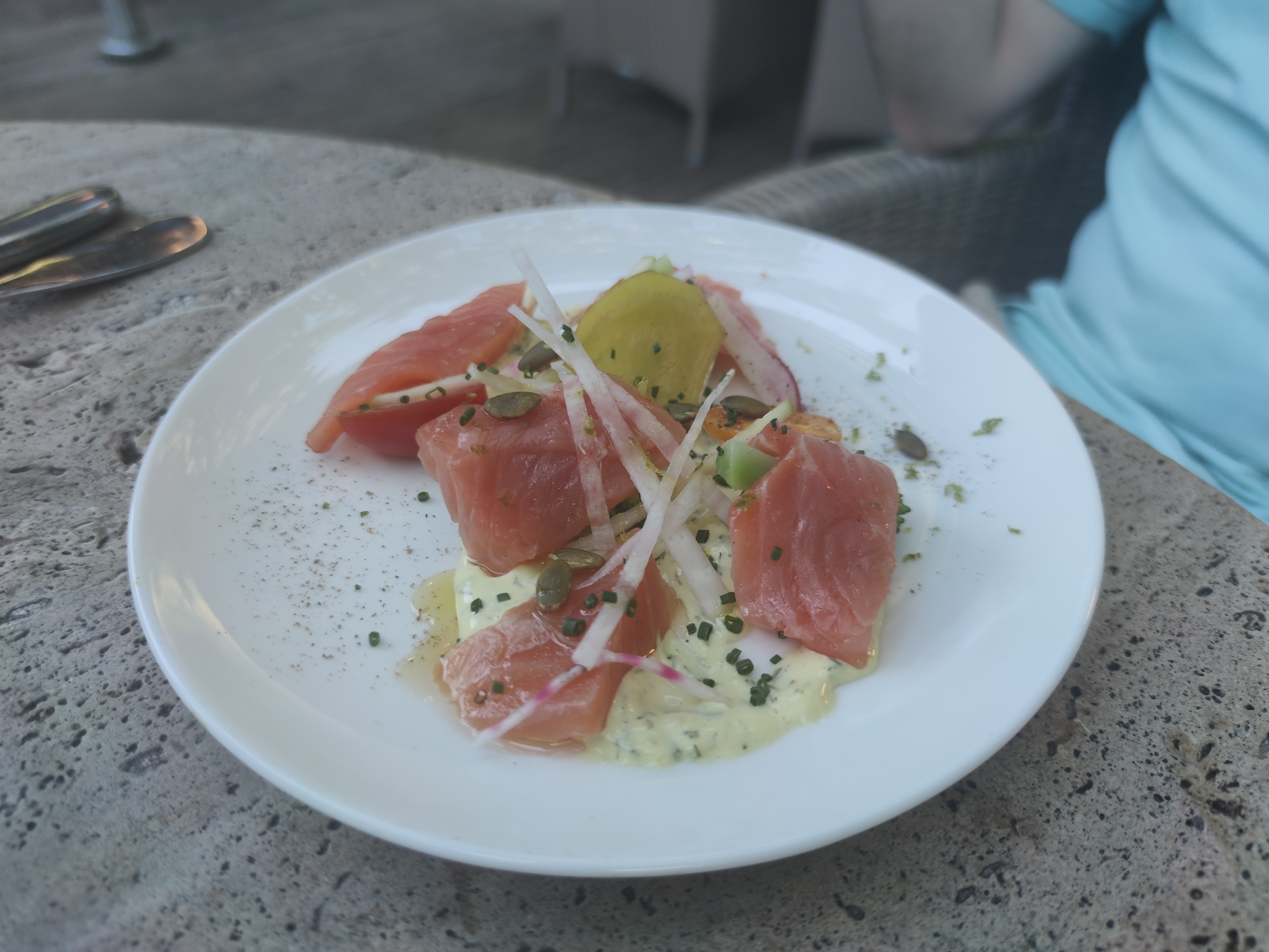 Très bonne cuisine, des plats légers avec une quantité largement suffisante et une belle présentation. Cependant, il a fallu attendre très longtemps avant d’être servis, d’où l’étoile manquante.