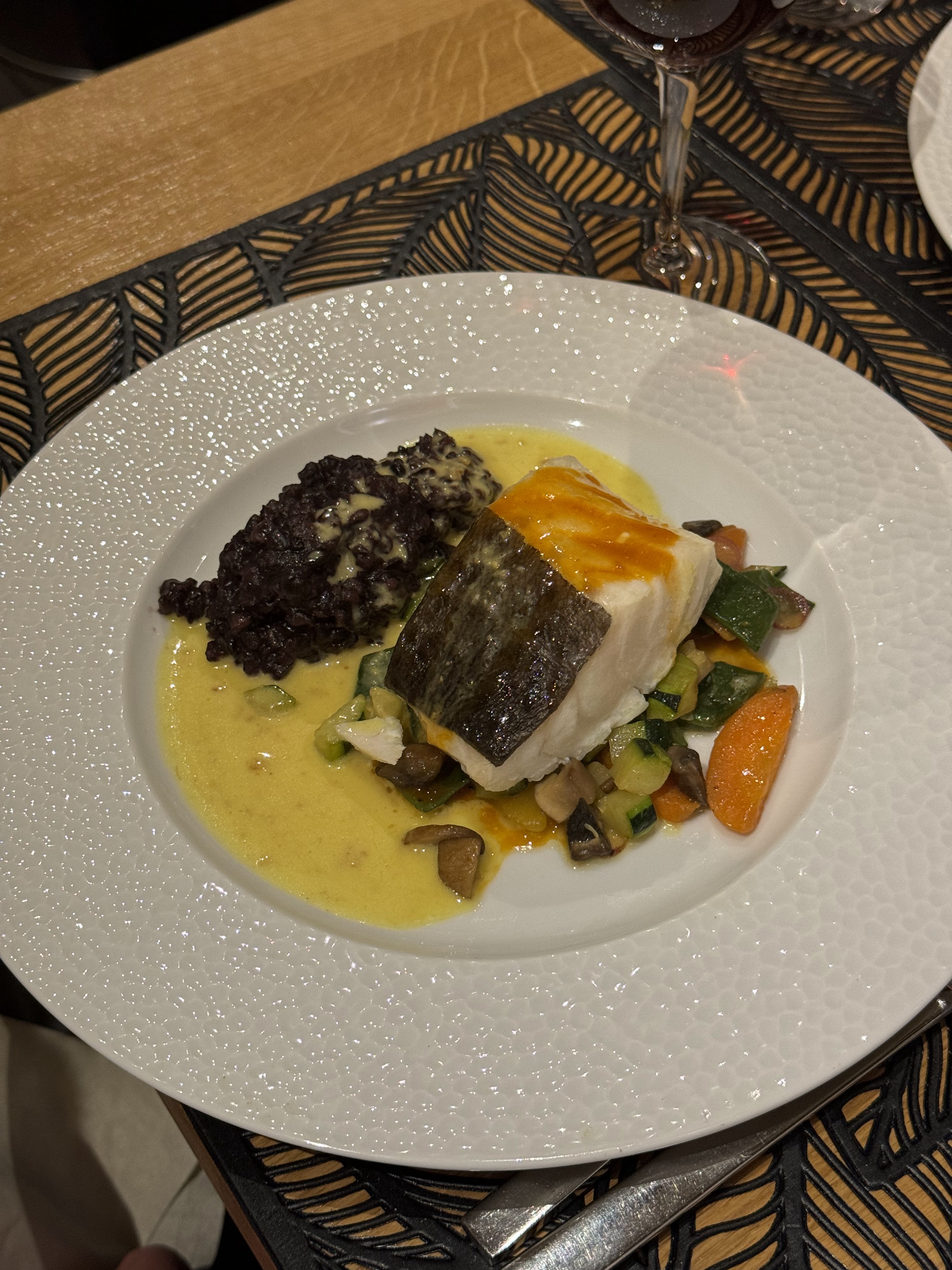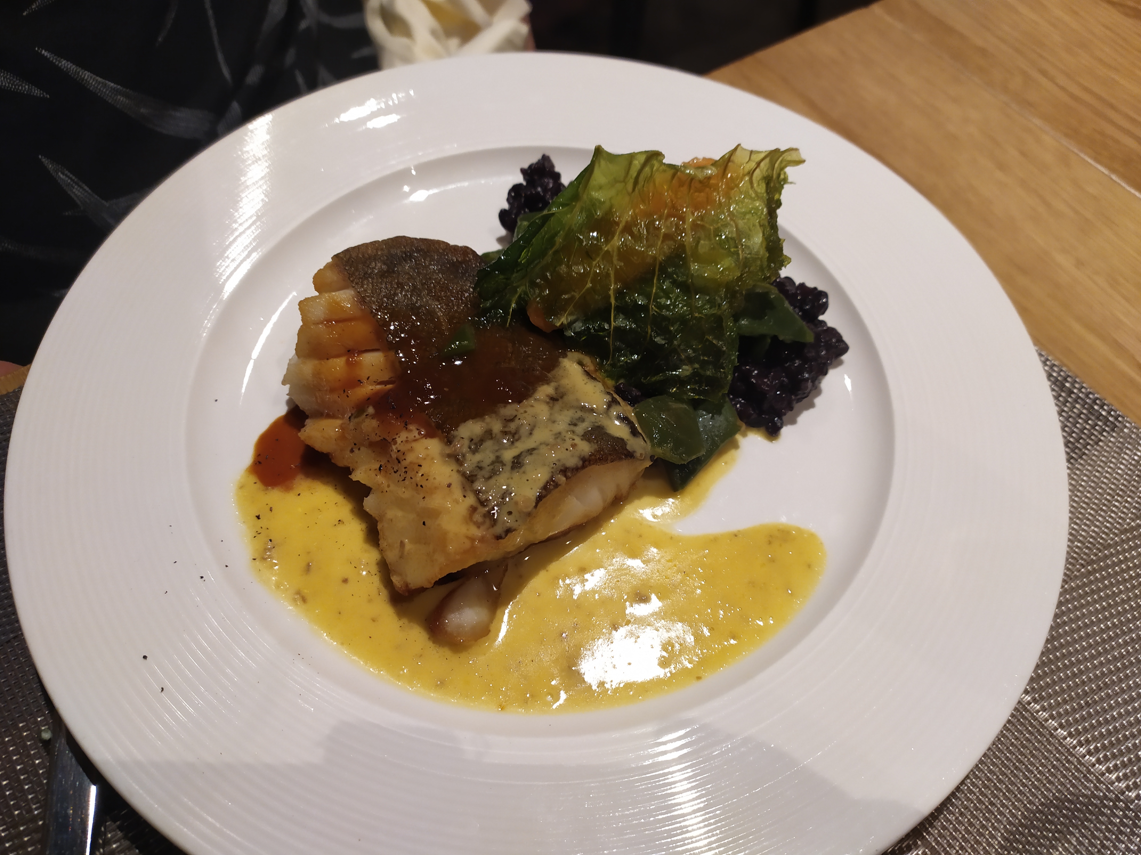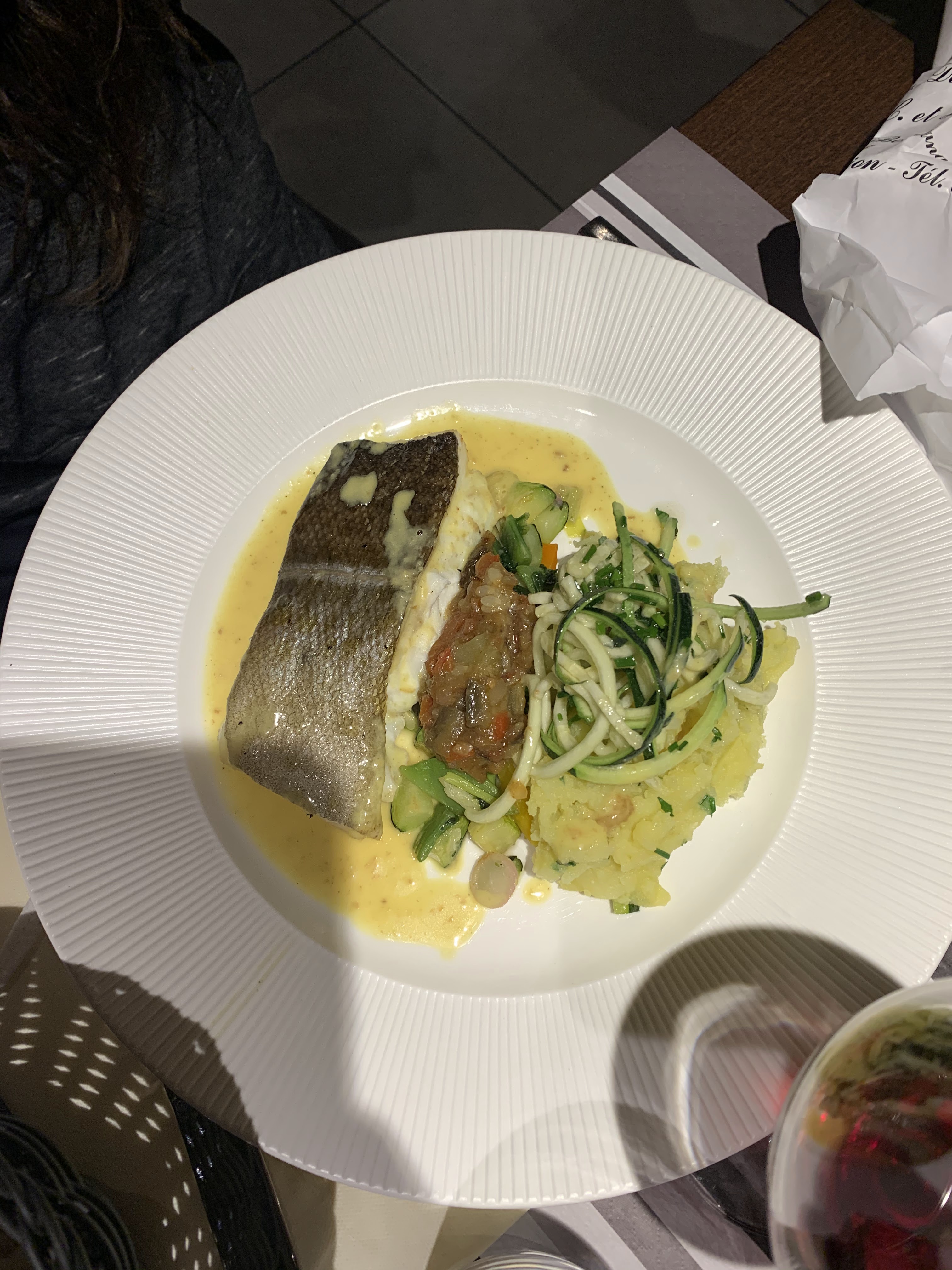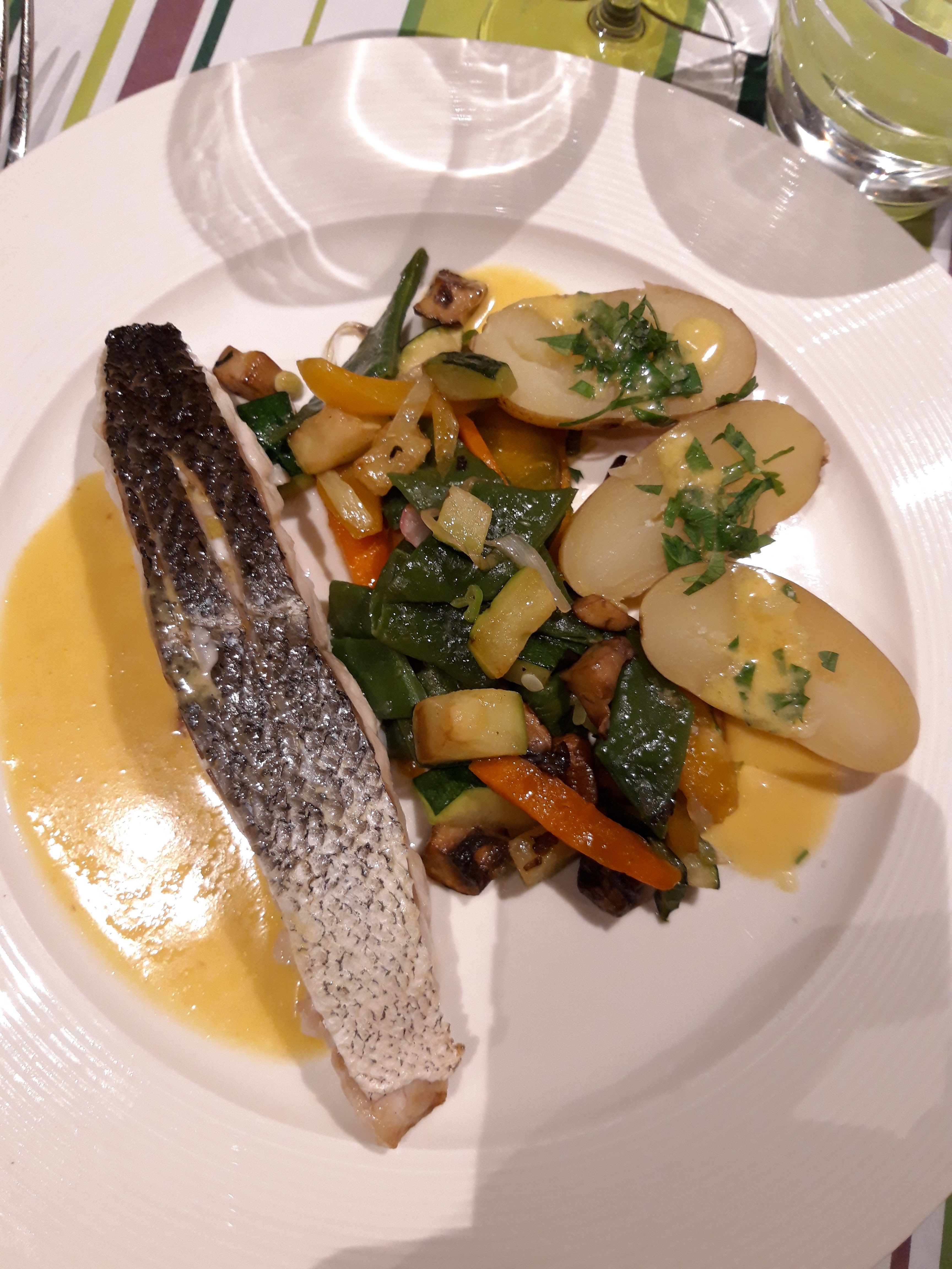 Nous étions les seuls anglophones sur place, ce qui en dit long. Mon pigeon était parfaitement préparé. Le poisson du jour du partenaire de restauration est bien préparé.