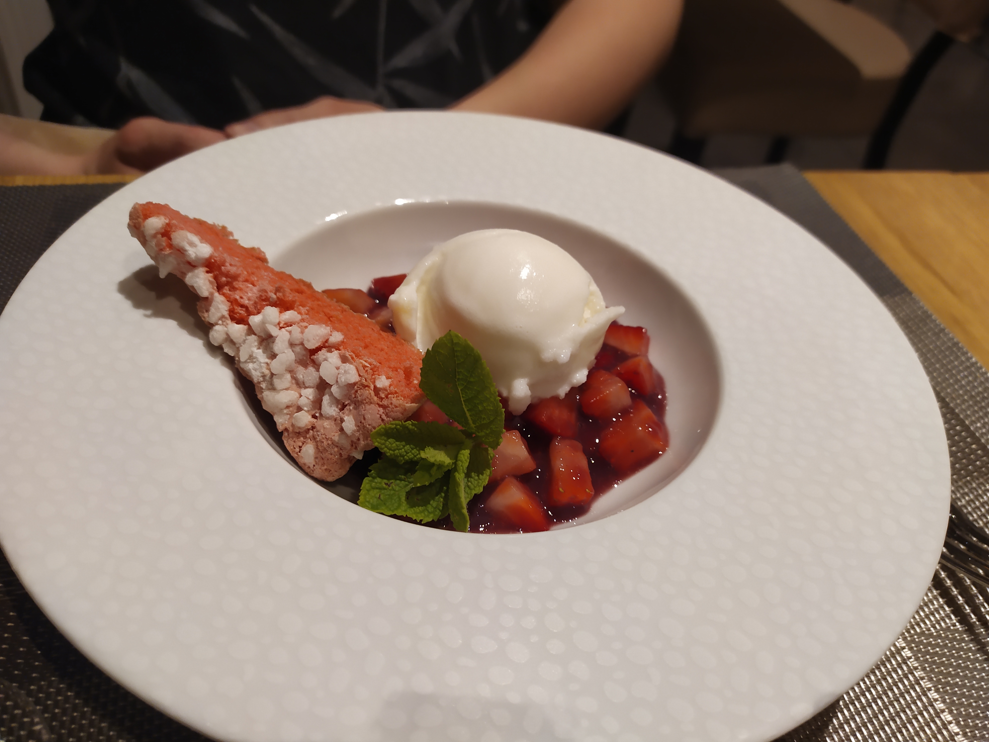 Une cuisine bien ajustée où les produits sont mis en valeurs. Les fraises au vin en gelée un vrai régal. Merci