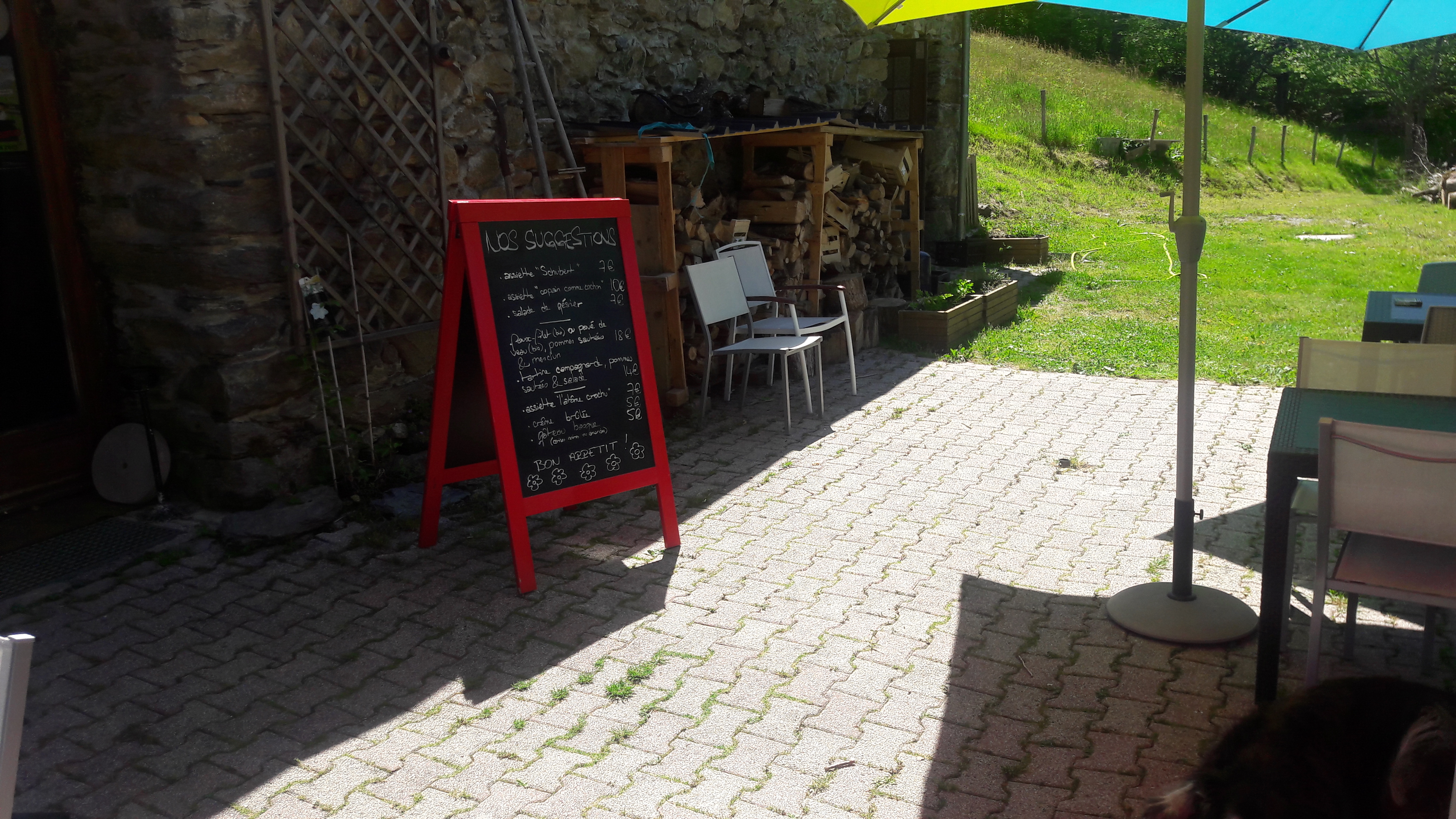 Agréable terrasse, en pleine nature. Il n'y à pas de menu, uniquement à la carte et pas de proposition de repas enfant. Les plats sont savoureux avec des produits locaux. Un moment partagé en famille, apprécié de tous.