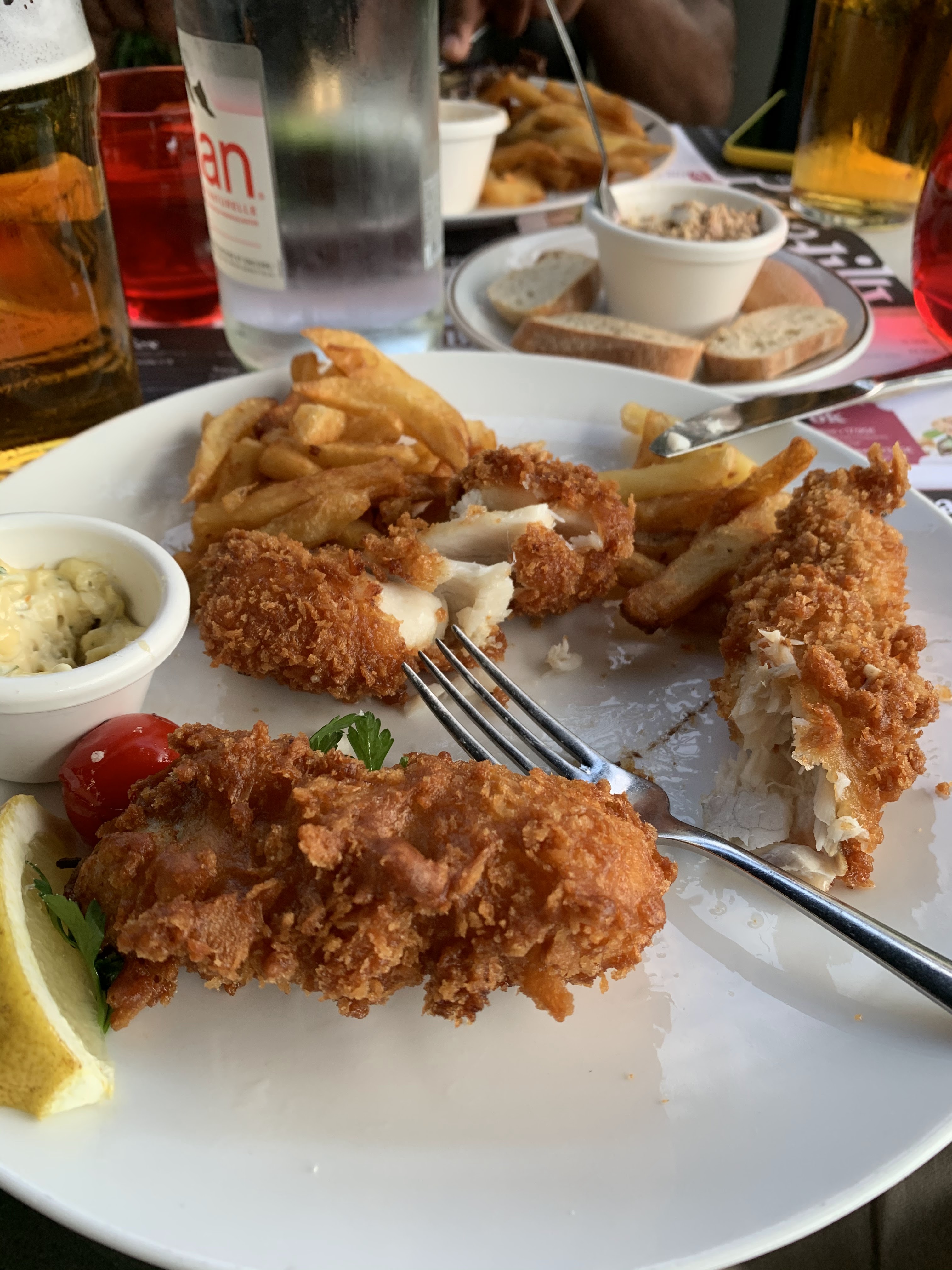 Bel accueil.. Super les serveurs.. Fish and chips super bon. Frittes maison et poisson frais. Prix 16.50€ A faire aussi. Lieu pour manger. Pour se detentre avec un bon verre. Je vous le conseil.