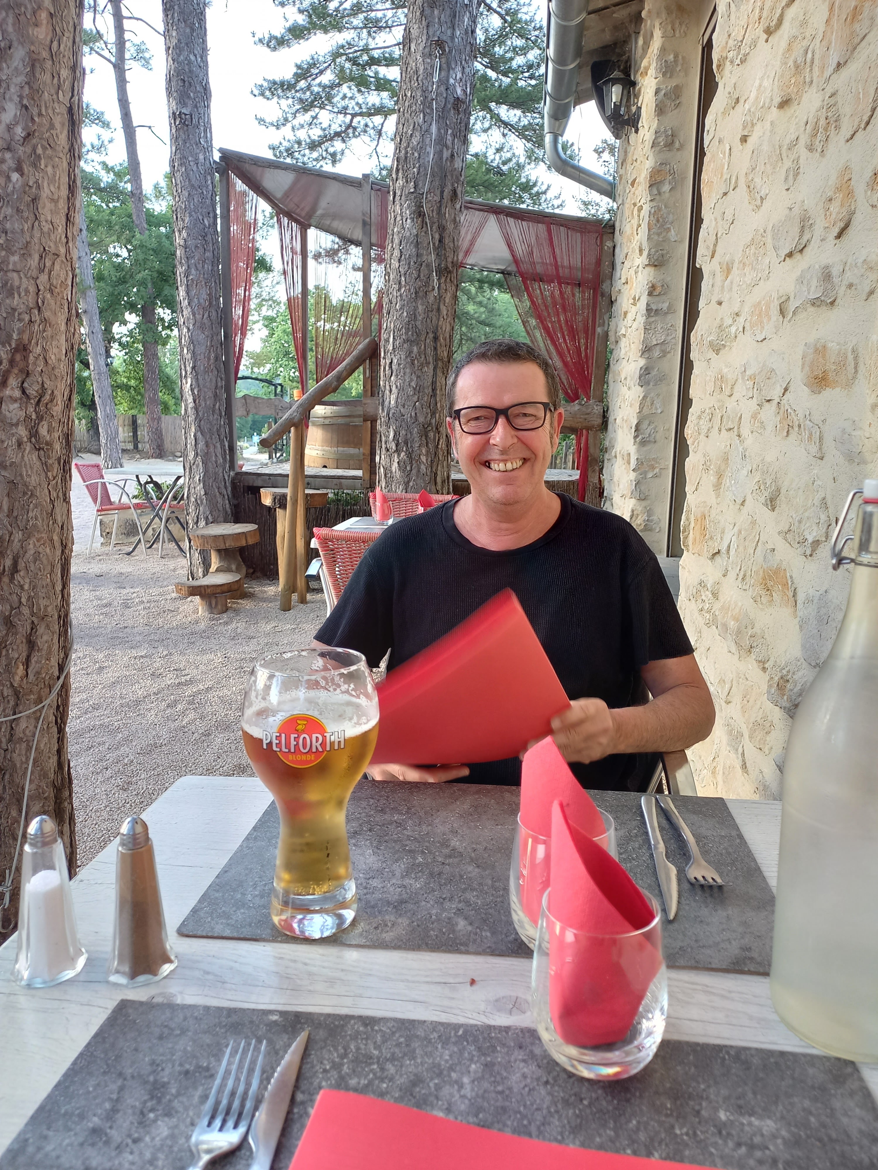 Si votre route vous amène à passer devant le Picourel entre Salavas et Vagnas (Ardèche), n’ayez aucune hésitation à vous y arrêter si votre ventre vous le réclame. La sobriété des parasols rouge sur l’espace où les tables ont été disposées, avec tout le respect de la distanciation sociale, s’harmonise bien avec l’écrin de verdure des pins maritimes qui vous offriront leur ombre. Le décor est ainsi planté. Côté acteurs, François dans le rôle de Maître de cérémonie, le sourire est toujours aux lèvres et sa réactivité à vous accueillir ne vous laissera guère de temps à rester en position debout avant qu’une table ne vous soit proposée. En coulisses, son beau frère qui n’a rien à envier aux compétences de François mais, cette fois ci, dans le domaine des plats que vous aurez choisis car c’est bien lui qui est aux fourneaux. A ce propos, les cuisses de grenouilles accompagnées d’une salle verte et de petites pommes de terre sautées n’a pas son égal dans la région. Alors si votre route vous amène à passer devant le Picourel, clignotant, un petit coup d’oeil dans le rétro et choisissez votre place sur le large parking de part et d’autre de la route. Seul petit inconvénient pour ce restaurant … il faut à un moment en partir et çà c’est difficile !