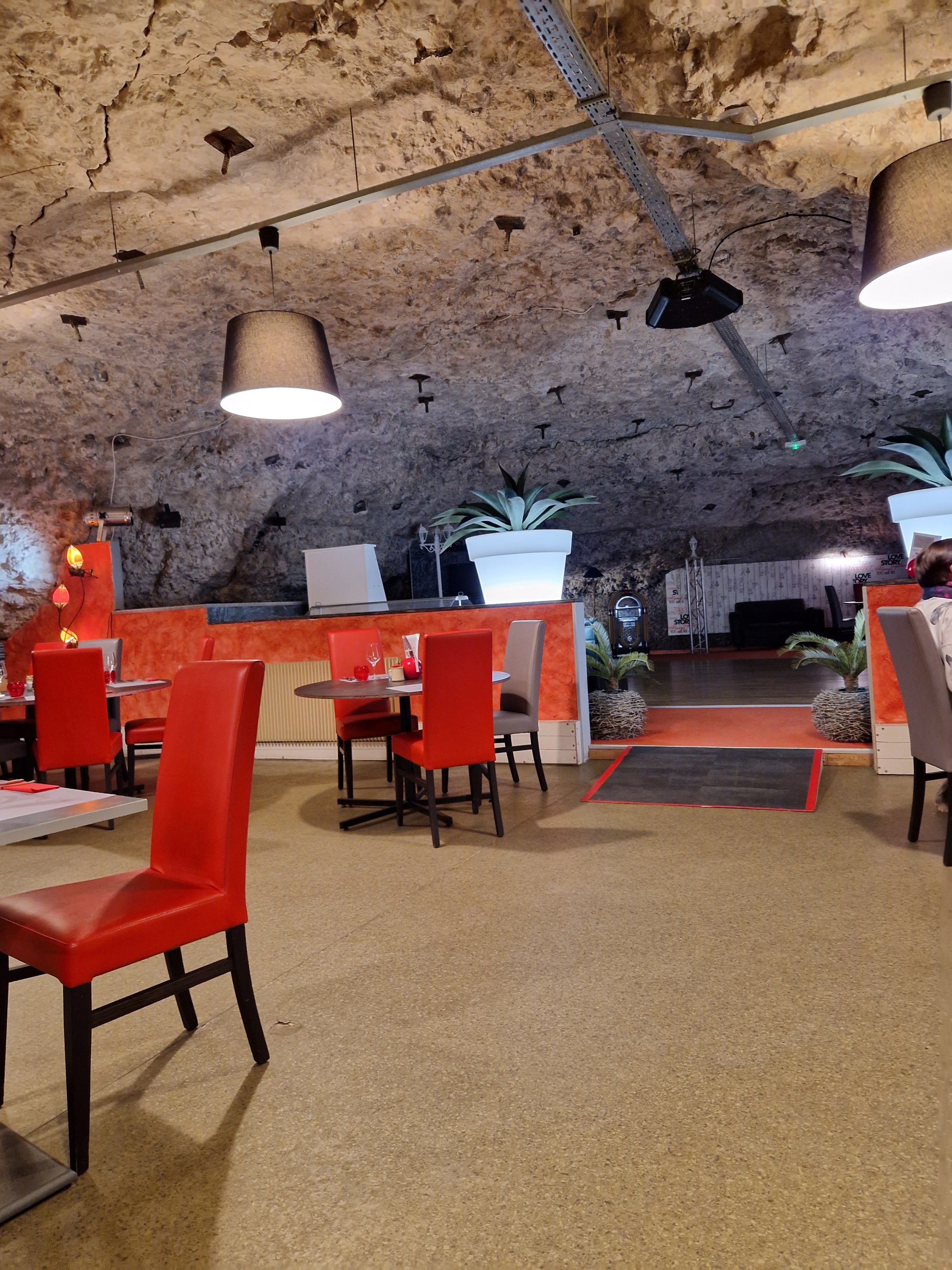 Cadre original, personnel aimable et efficace, service rapide, prix modérés et plats populaires bien cuisinés et agréables. Voilà, en style télégraphique, nos impressions après cette première visite. Si on cherche un resto gastronomique, ce n'est sans doute pas la bonne adresse, mais si on veut des plats plutôt du terroir, sans chichis, mais goûteux et pour une addition très modérée, c'est le bon endroit. Atmosphère agréable mais un peu fraîche (grotte oblige); n'oubliez pas votre petite laine! Pour une première visite, ce fut une pleine réussite! Merci de cette soirée.