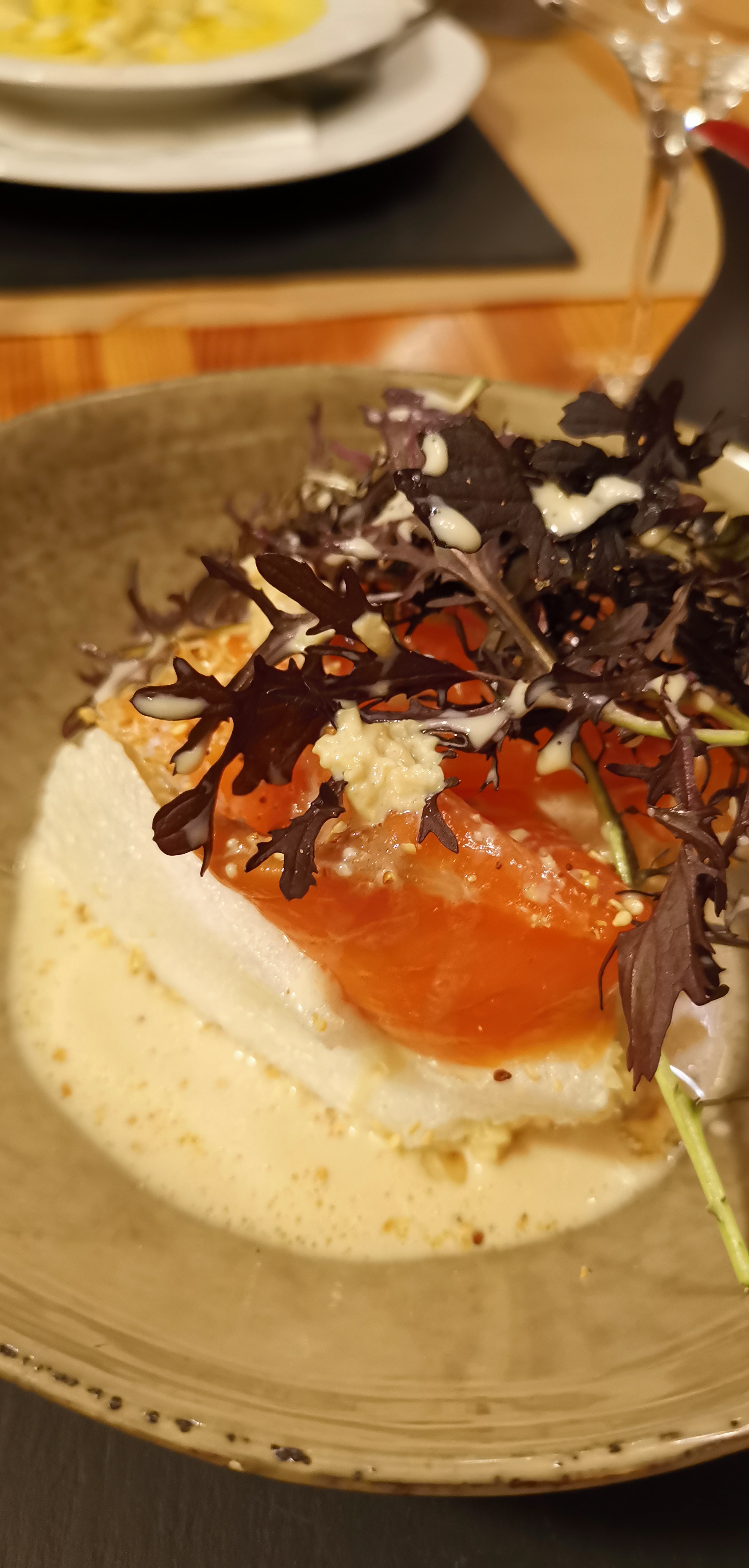 Déception pour cette soirée , la raie aux agrumes avait une forte odeur de poivre je suppose, et emportait la bouche, heureusement le pain était bon ....je n'ai pas trouvé le goût des agrumes...en 2017 j'avais apprécié la cuisine. Je pense que les épices ou autres devraient être signalés sur la carte.