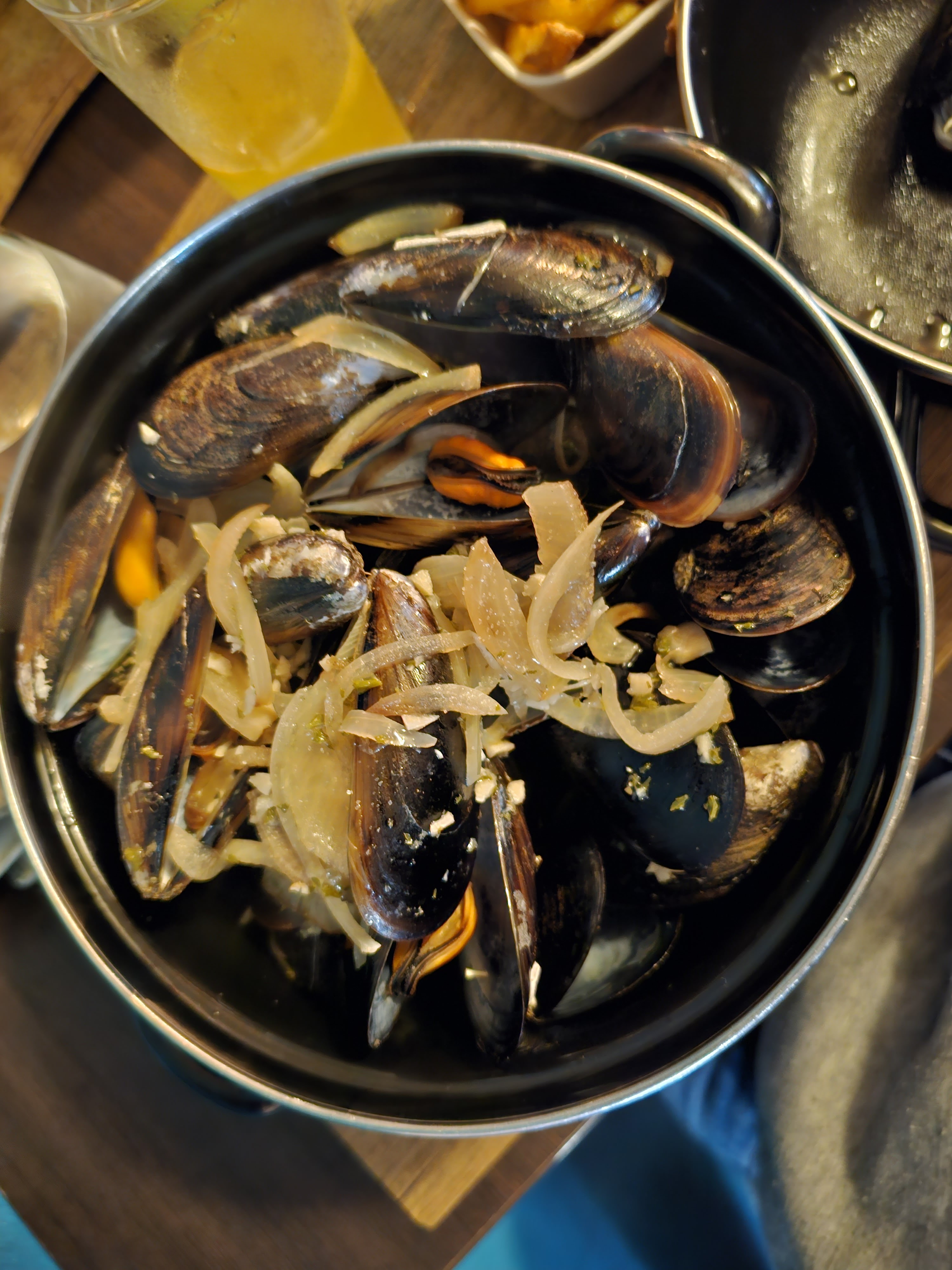 Une serveuse très sympathique dans ce petit resto qui propose comme son nom l'indique des moules. Bien préparées, elles sont un régal 👍🏻! Un bonne expérience gustative.