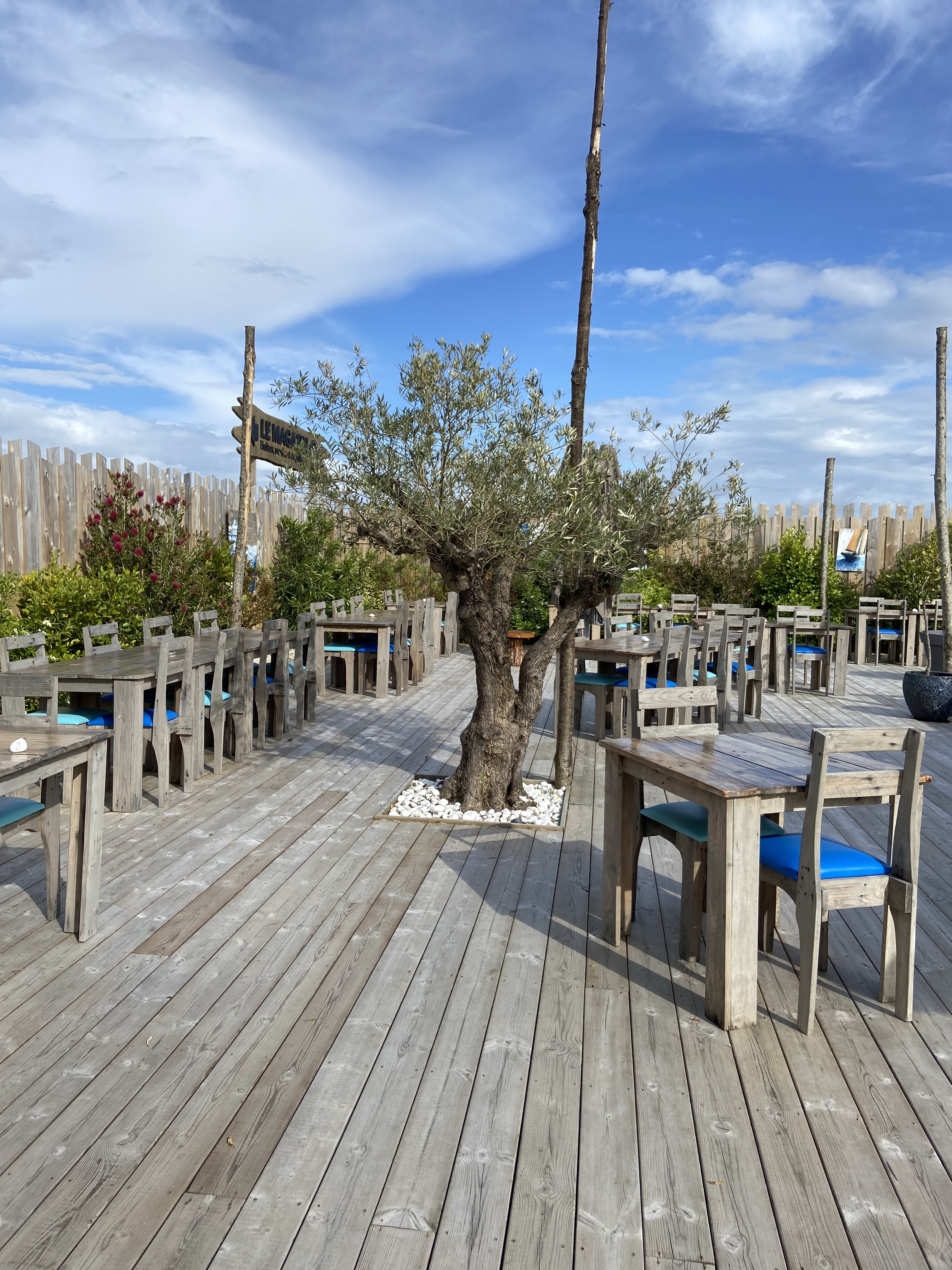 Établissement neuf au milieu des étiers Vous dégustez des moules (sèches sans sauces) ou plateau de fruits de mer. Service non organisé la table est suivie par 4 serveurs qui vous oublient tous ! Foutoir désagréable ! tout les serveurs habillés en marin courent partout sans efficacité. Les tables non desservies sont laissées en vrac et les serveurs discutent entre eux ! Côté très désagréable ! D’autres paillotes sont mieux organisées et moins chères ! Les crustacés en vente au vivier sont hors de prix ! Une honte !