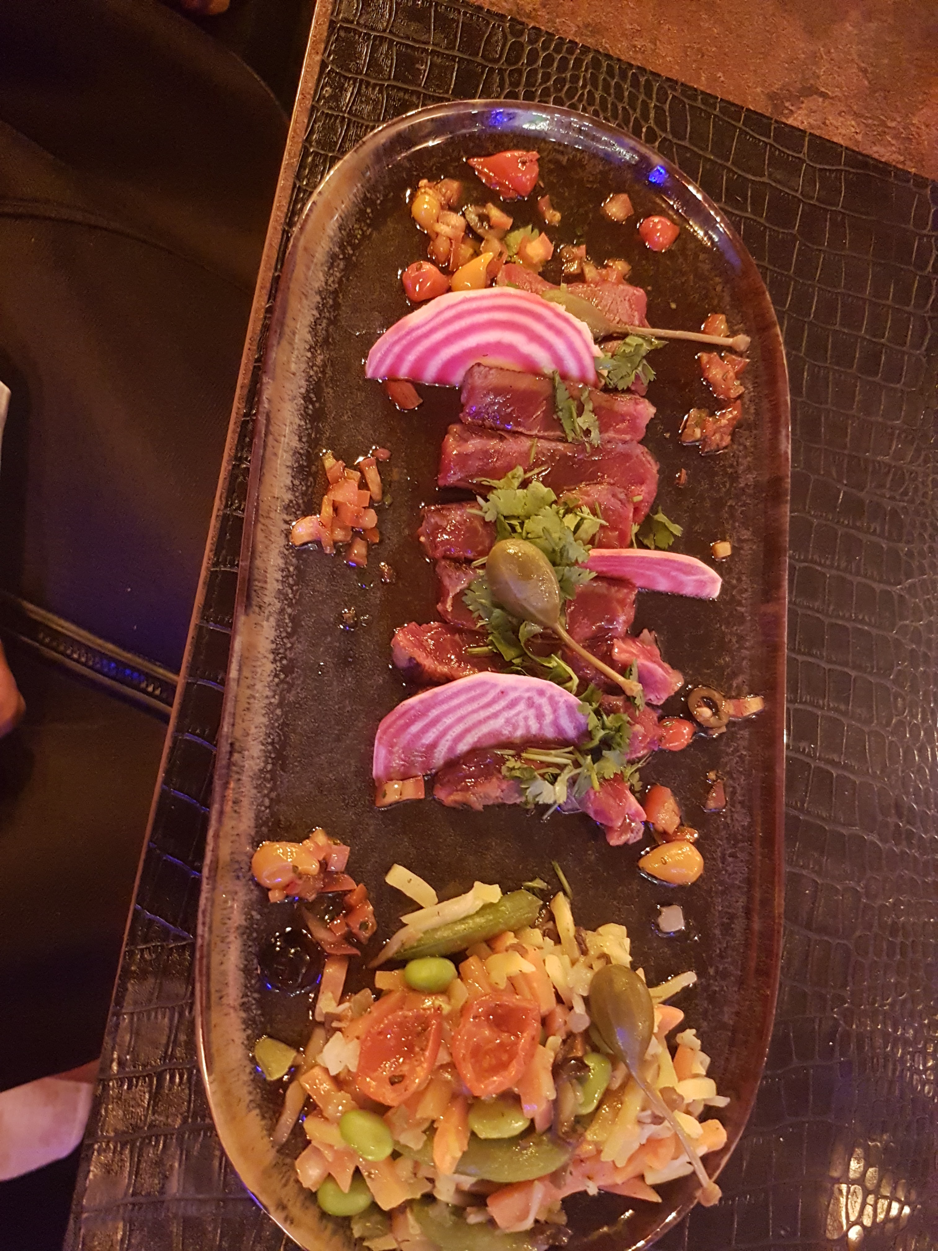 Un beau restaurant et bar avec un personnel sympathique. Le serveur était sympathique et nous a aidé à comprendre les plats proposés. Nous avons commandé du canard et bien que très rare pour notre palette irlandaise, c'était plutôt de notre faute si nous n'avions pas précisé exactement comment nous voulions notre nourriture. C'était toujours délicieux et une expérience unique. Après notre repas, nous avons reçu un bon gratuit pour accéder à la discothèque Jul’s voisine, où nous avons passé une agréable soirée après le repas. Hautement recommandé