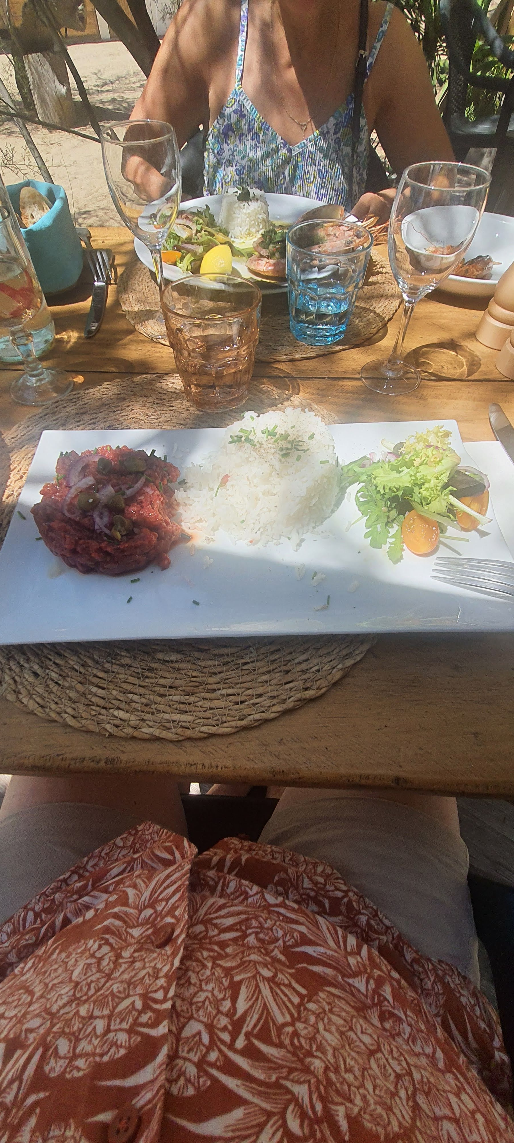 Un chouette endroit, différente des autres plages , le restaurant pieds dans le sable à l’ombre des tamaris donne envie de prolonger le moment. Des plats copieux et goûteux, un personnel adorable.