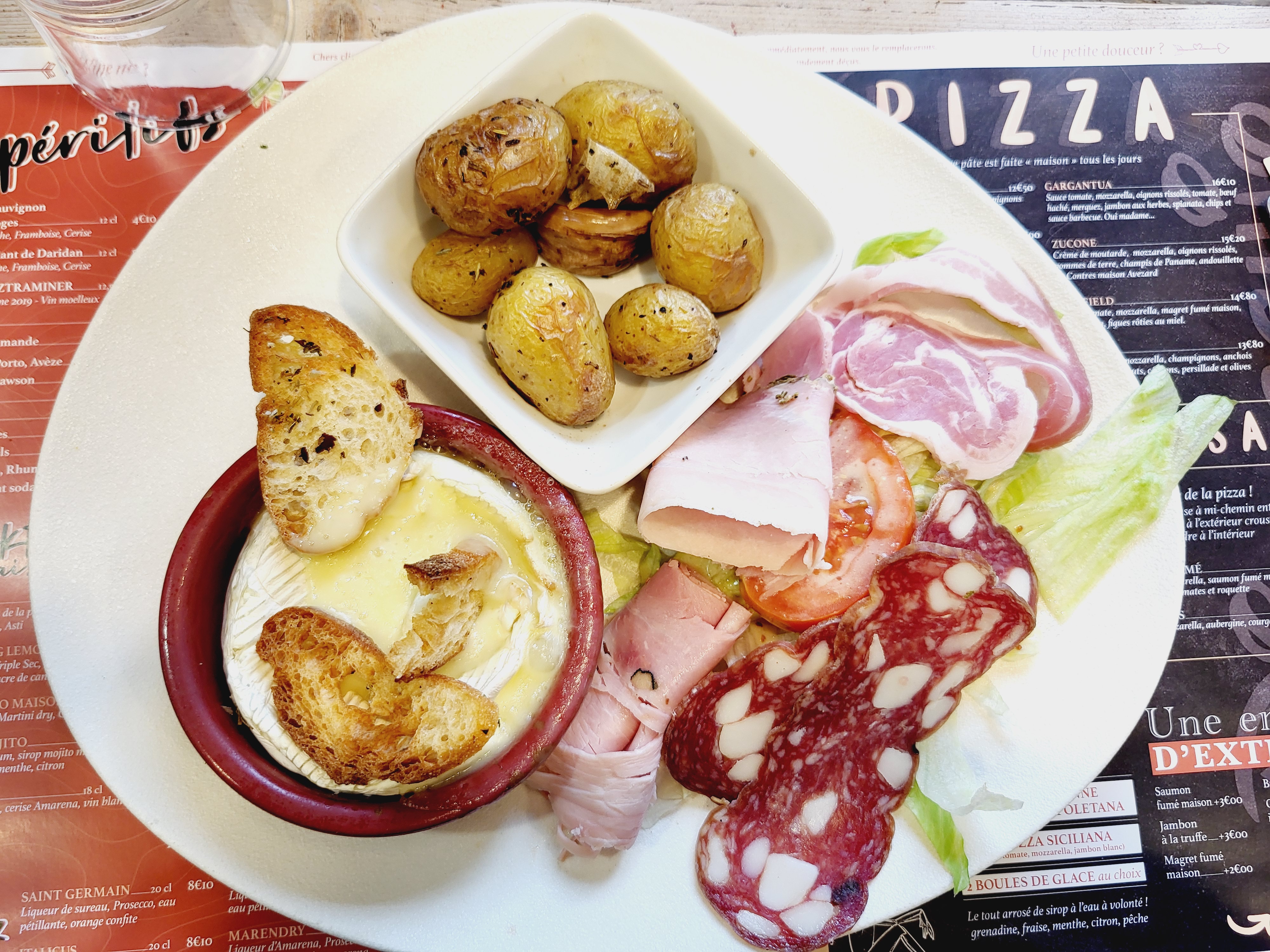 Très bon petit restaurant. 2 jeunes forts sympathiques, très aimables Pizza au magret canard fumé et figues rôties au miel. ( manque un peu de noisettes torréfiés comme Énoncé) très bonnes, j'ai adoré. Mr à pris le camembert, très bon aussi. Malheureusement l'attente fut très longue après le plat pour avoir la commande de dessert et étant fatigués nous avons donc abandonné le dessert. Mais vu le monde nous comprenons qu'a vous deux c'était compliqué. Je recommande ce petit resto avec un charme fou sur le thème de Pinnochio. Adorable. .