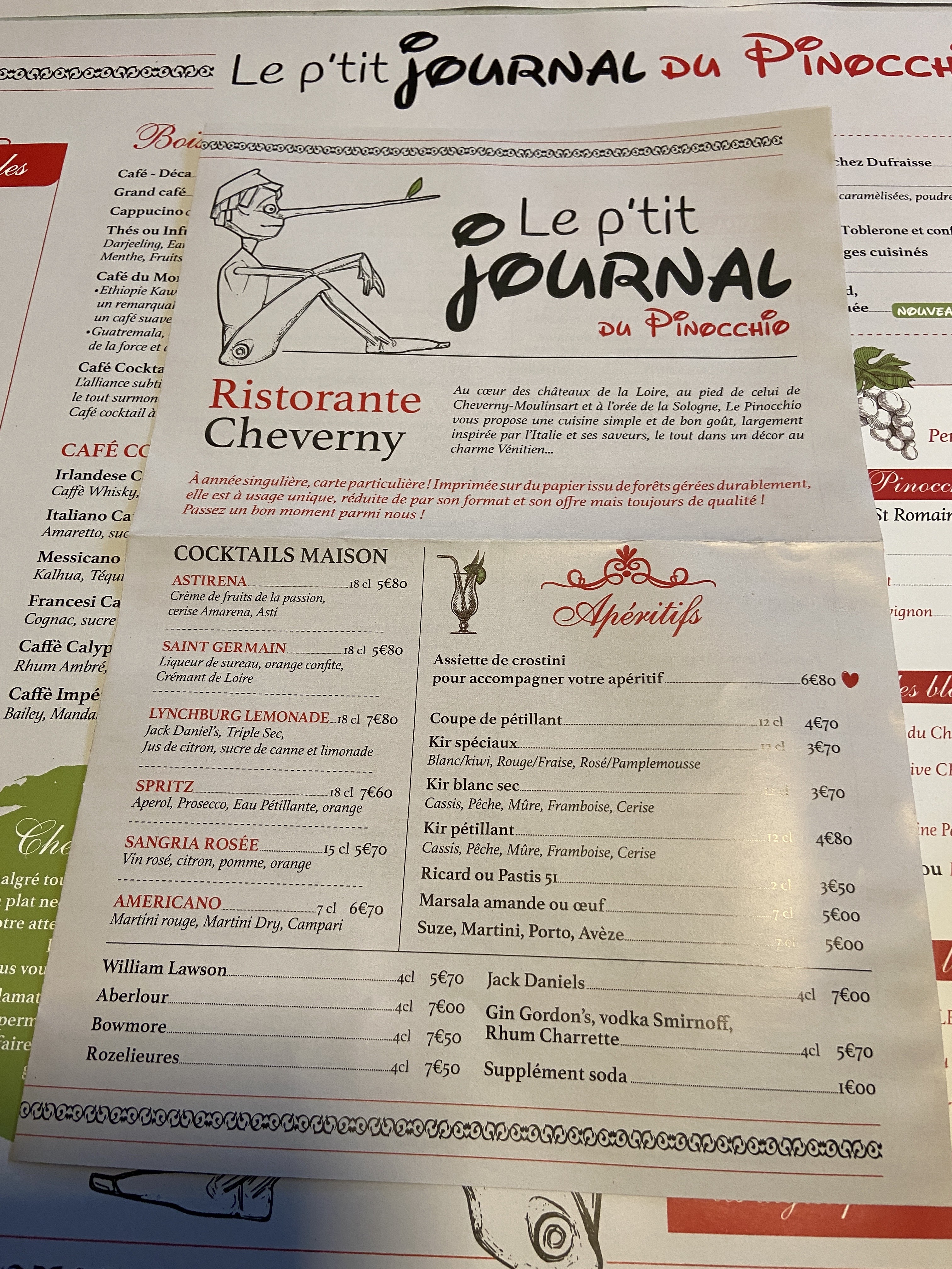 Un accueil chaleureux, de bons produits, résultat nous y sommes retournés ! Merci à toute l'équipe du Pinocchio pour ces 2 soirées agréables ! Si vous passez dans le coin, allez-y! Vous ne serez pas déçu !
