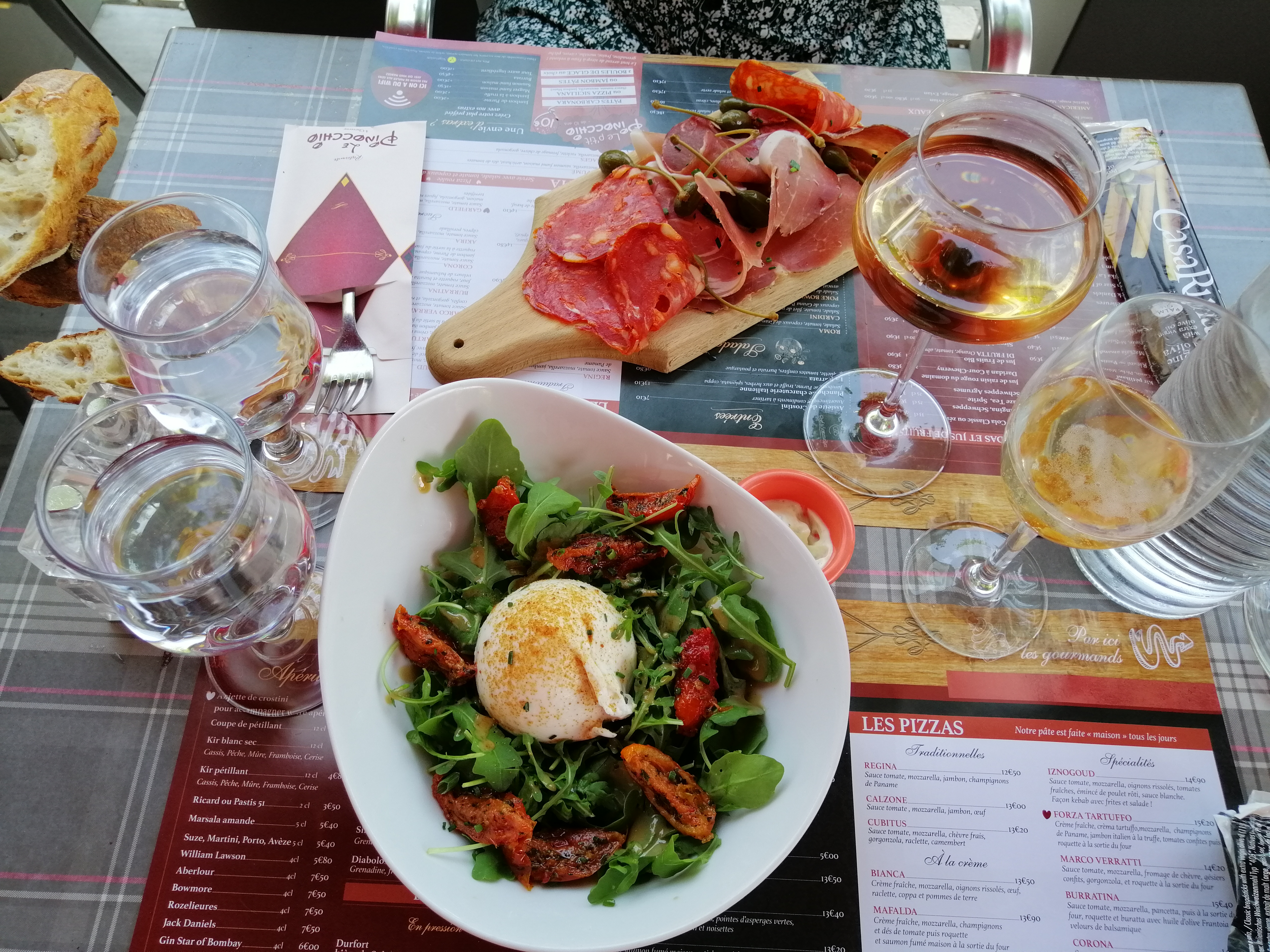 Kir pétillant original et goûteux. J'ai apprécié la pizza tartuffe et ma convive la corona. Les sorbets sont annoncés artisanaux ce qui semble être le cas. Le cappucino est de belle facture et avec une mousse de lait comme il se doit. Le pichet est de bonne facture. L addition est raisonnable. La gentillesse du personnel est un plus non négligeable même si sa tenue vestimentaire décontractée n'est pas de mise. Le confort est rudimentaire mais nous dinions en terrasse ce qui est plus excusable. Les sièges disposent d accoudoirs ce qui est agréable mais leur assise est fort étroite pour les gabarits supérieurs. Un parking aisé est situé quelques dizaines de mètres après le restaurant