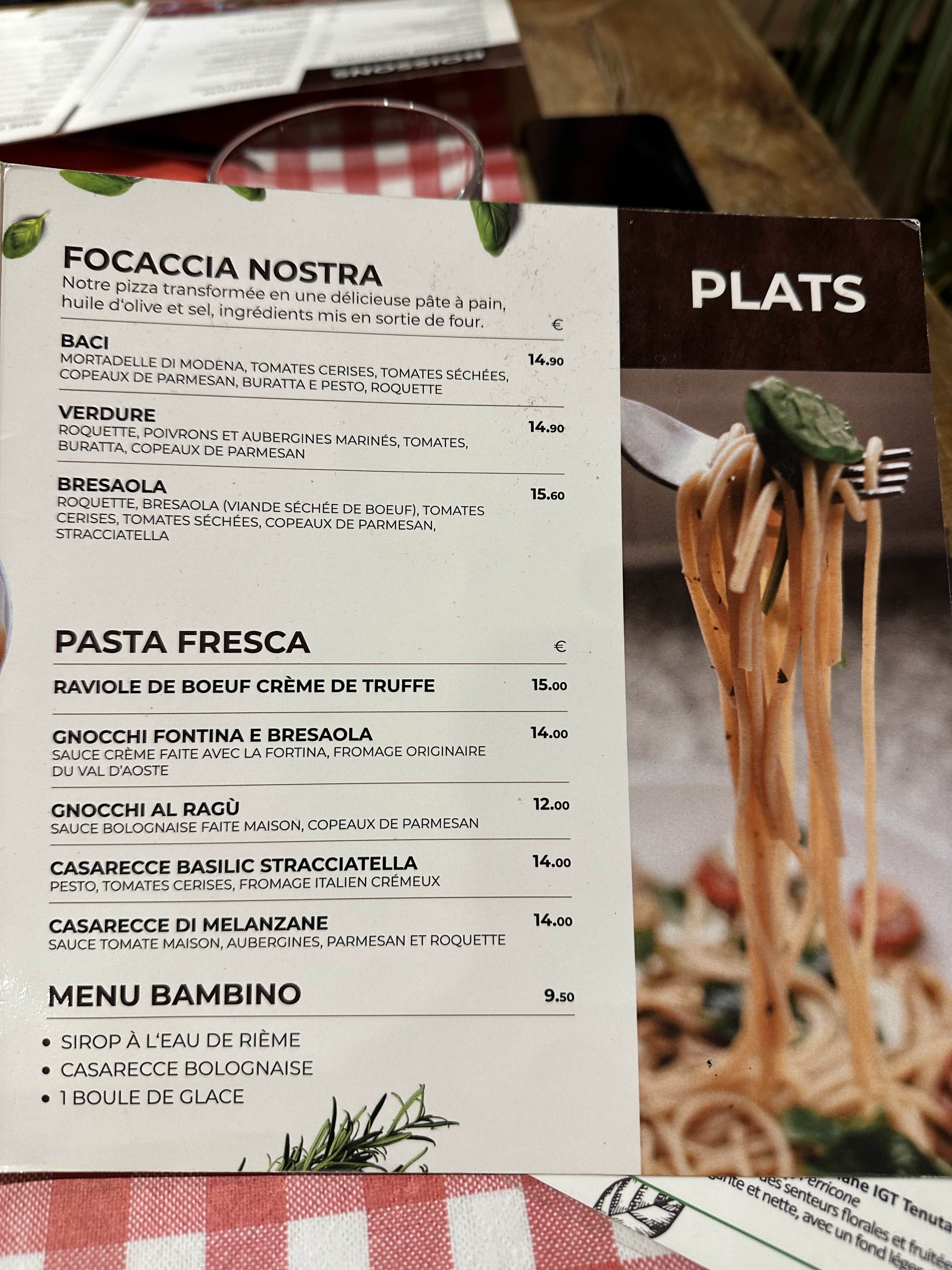 Accueil sympathique. Petite carte amplement suffisante pour se régaler. Les pizzas, les focaccias sont excellentes, très bonnes pâtes, charcuterie italienne au top. Belles salades qui font saliver. On a envie de tout goûter. Belle carte des vins Italienne en harmonie avec la cuisine. Attention pour les amateurs de viande, pas de grillades, de viandes mijotés. On s'en passe très bien bien, tant on se régale des plats présentés. Petite carte des desserts suffisante pour terminer sur une touche sucrée. Le tiramisu est excellent. Pensez à réserver, pas de terrasse, mais le cadre est sympathique. Une belle adresse.