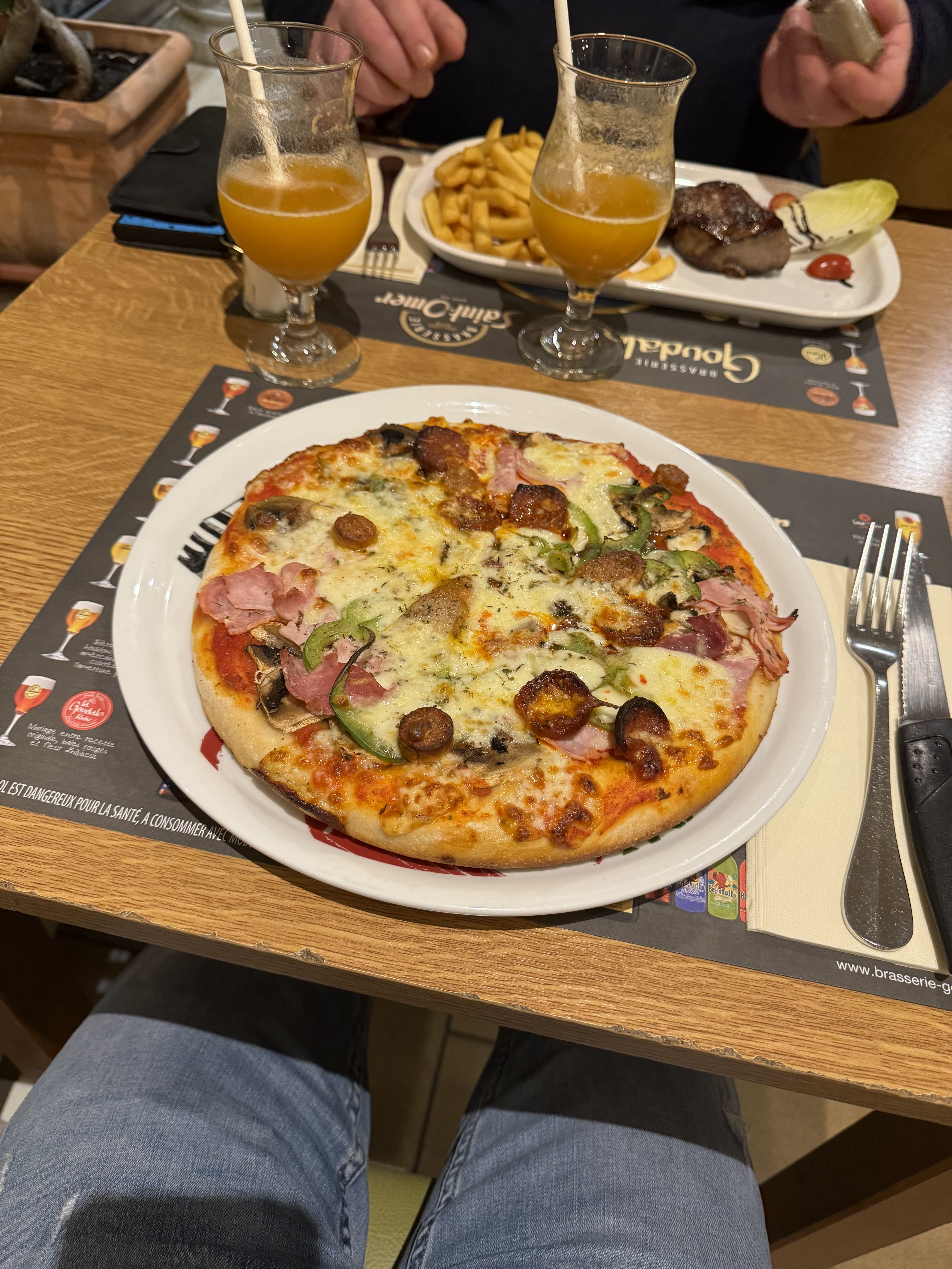 Les pizzas sont bonnes les ingrédients vraiment de bonne qualité. Le service très bien Très bonne accueil Très déçu de l’apérol Spritz … je prends tjr et déjà pris dans pas mal de lieux différents et là c’est la 1er fois que j’ai reçu un petit verre tout petit Le cadre un peu déçu des couleurs ça fait un peu vieux mais c’est très propre … ( question de goût) Les prix rien à dire ils sont vraiment abordable et la qualité est là. L’hygiène au Top ( control à jour exposé ça fait plaisir) On mange calmement aussi Je recommande sans hésiter.