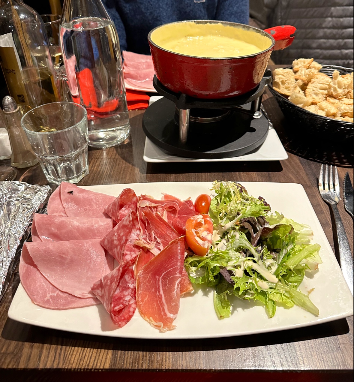 Une fondue pour 2 à 23,90€ par personnes. La charcuterie, le pain ainsi le fromages étaient correct sans pour autant être mémorable. La quantité est généreuse. Mon mocktail était cependant (passion, cassis, ananas et pierrier) super bon ! Le service était rapide et agréable :) Je reste sur une note très positive et si d'avenir nous devions revenir sur Lyon, nous y reviendrons.