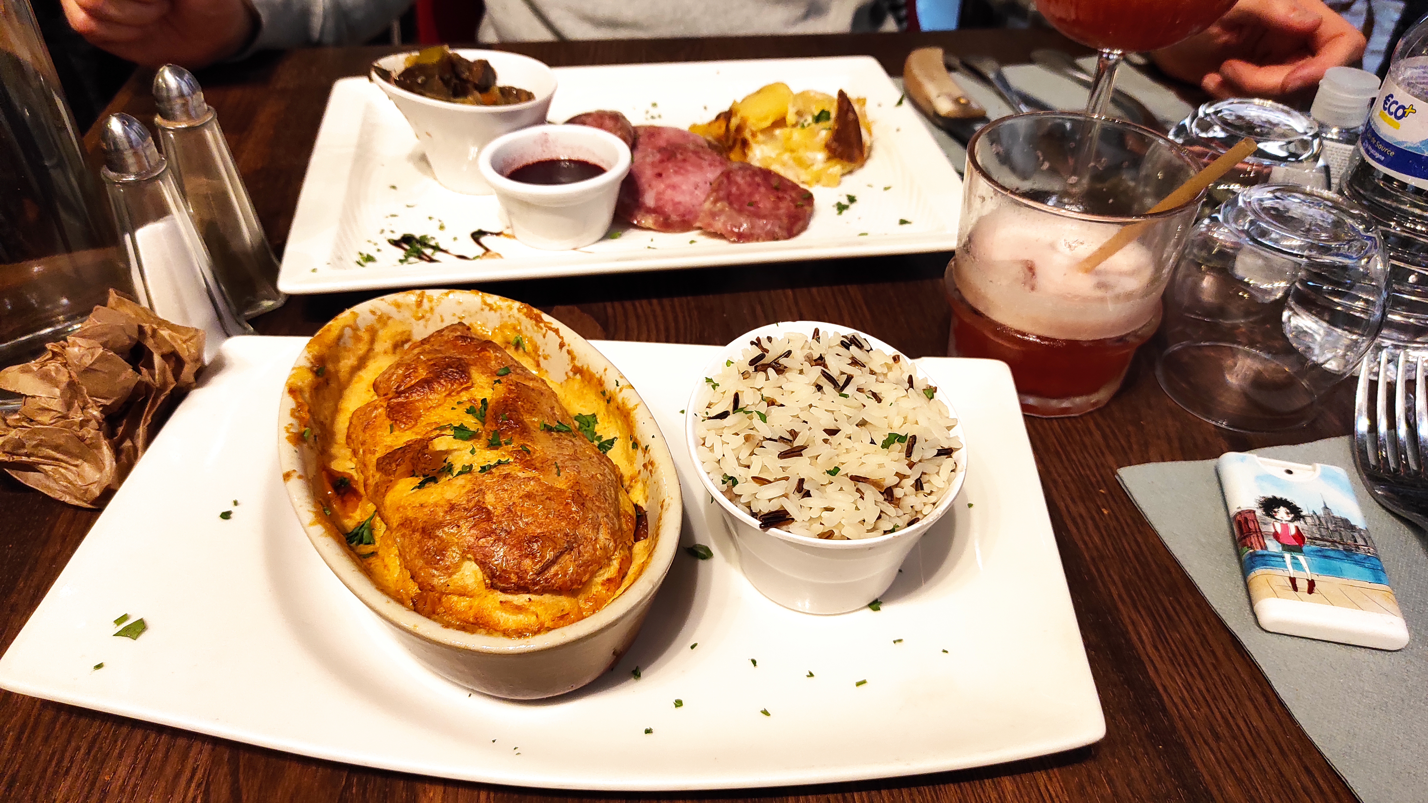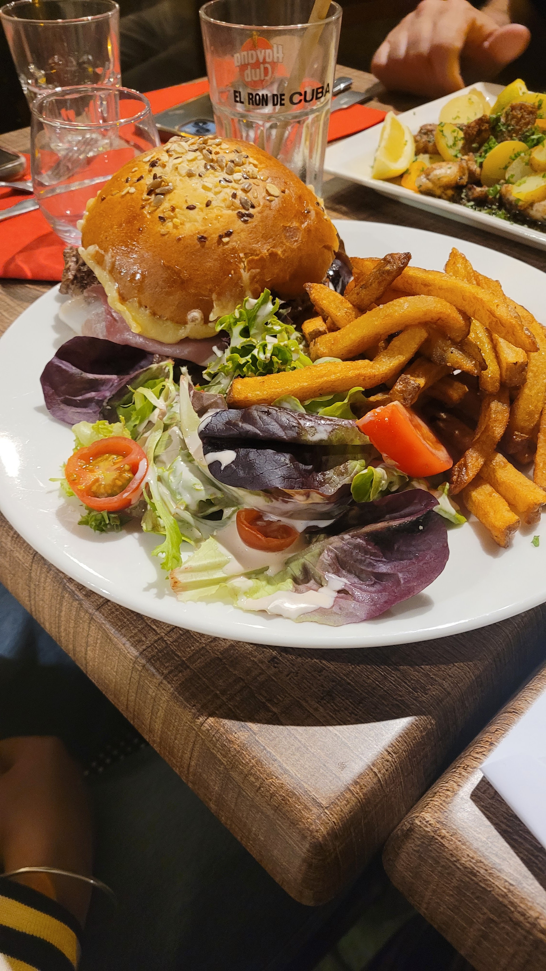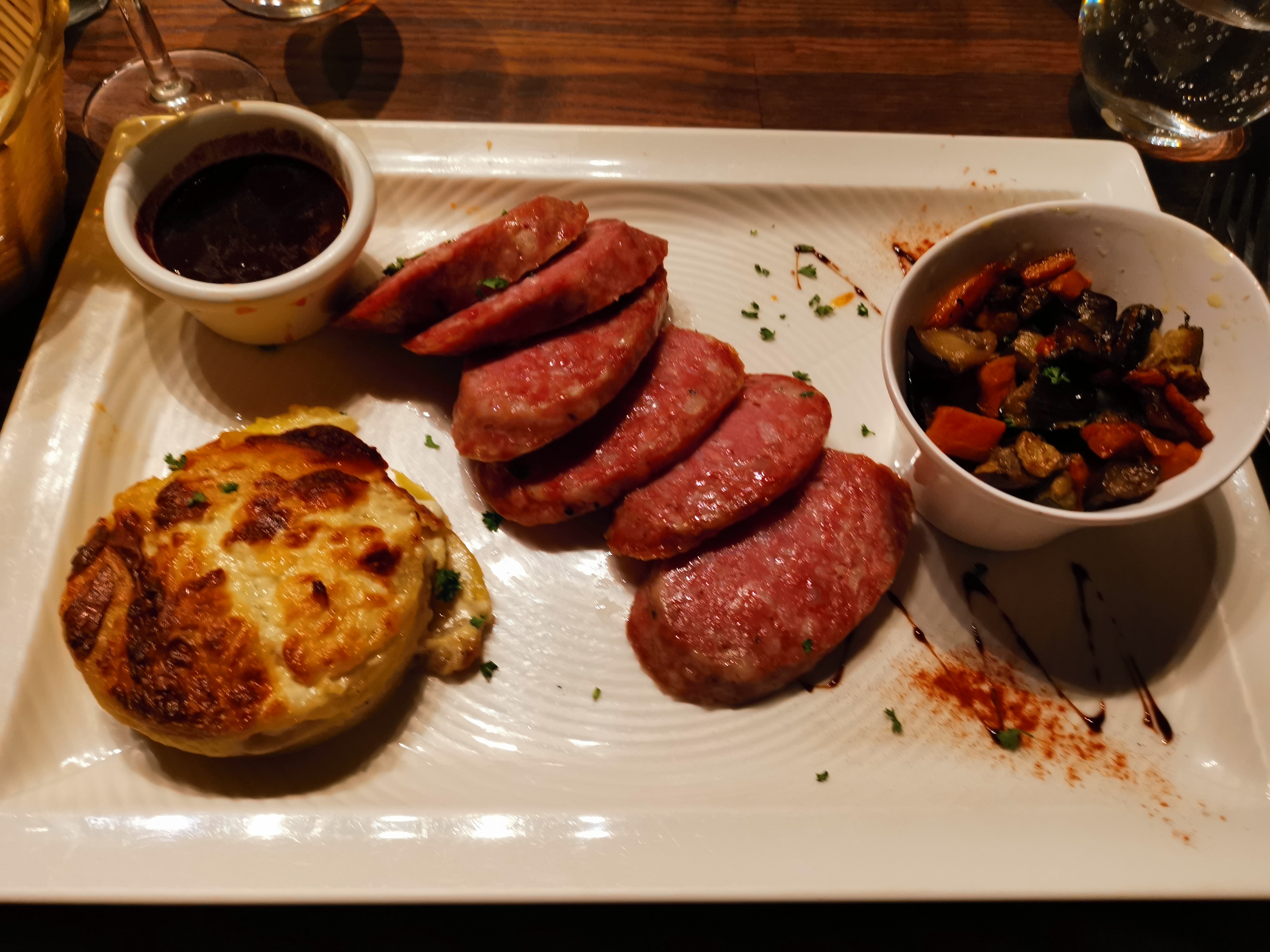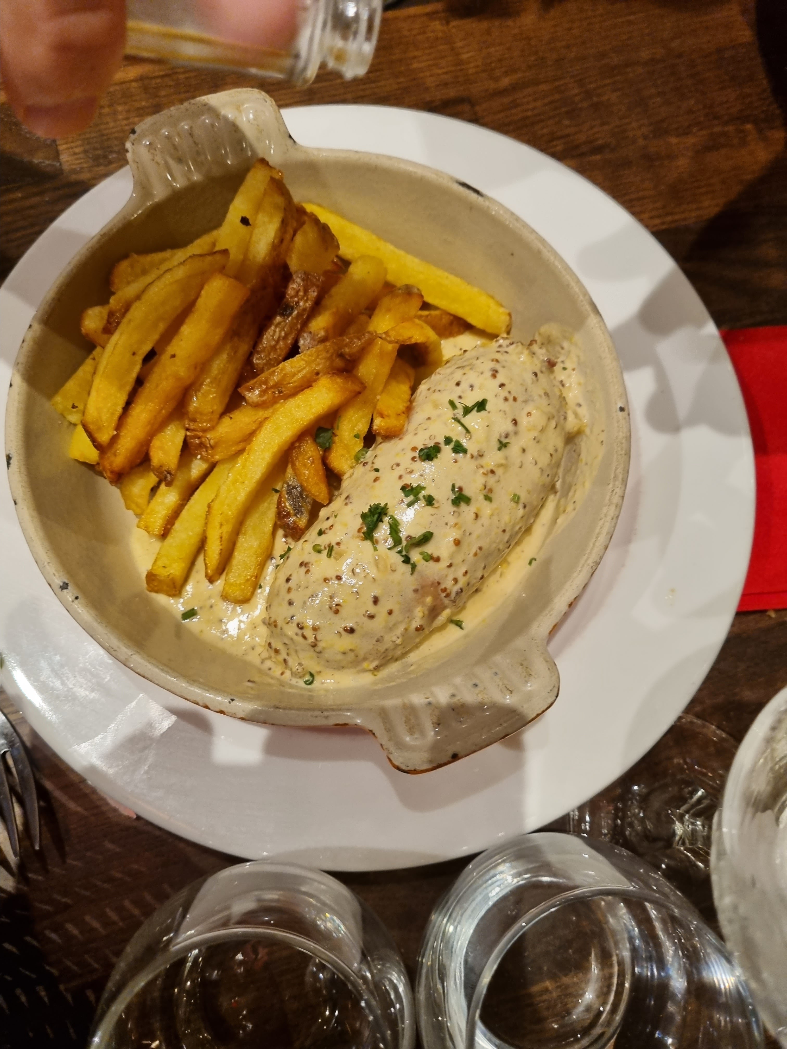 Entrée en matière décevante avec un saucisson chaud Lyonnais ? Pas sûr . Mais les plats relèvent largement le niveau. Andouille de canard et magret de canard vraiment très bon hormis la sauce trop poivrée . Les frites faites font toujours plaisir Le service est agréable et professionnel. Bonne soirée