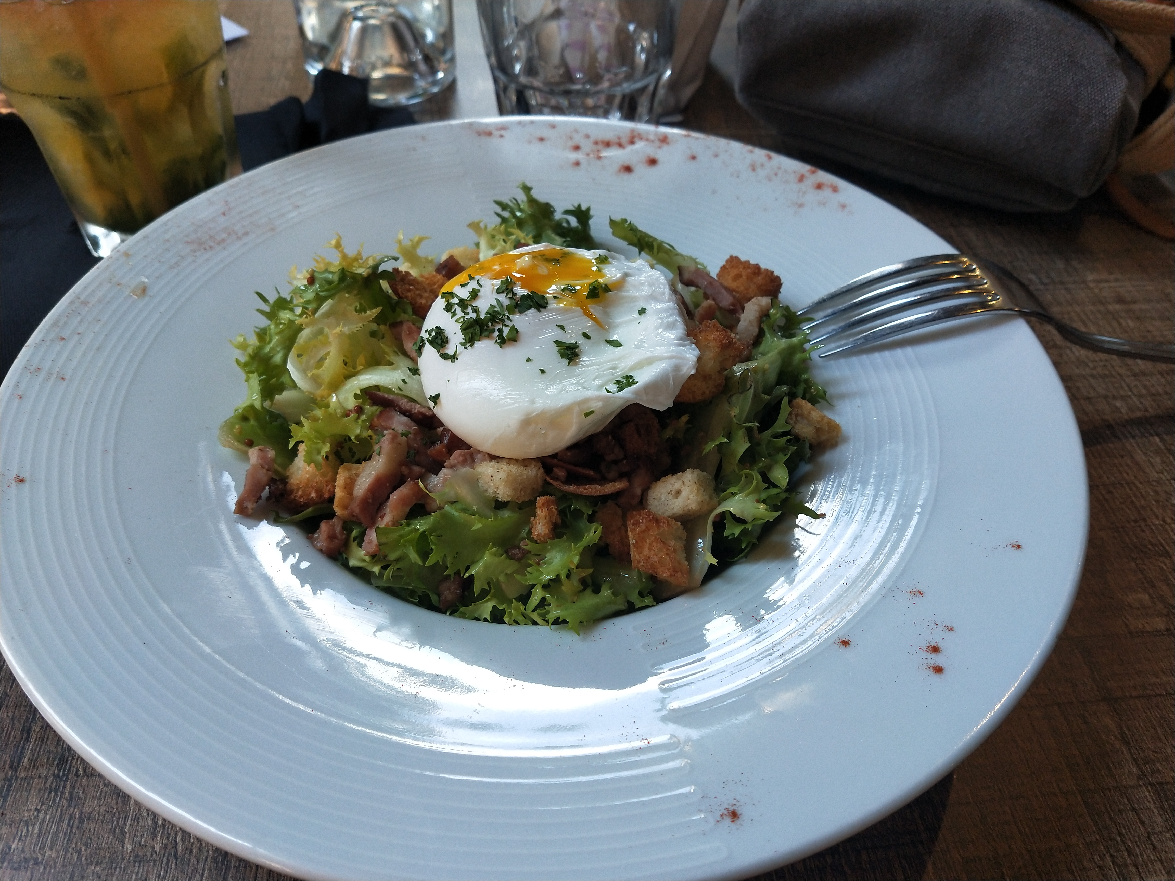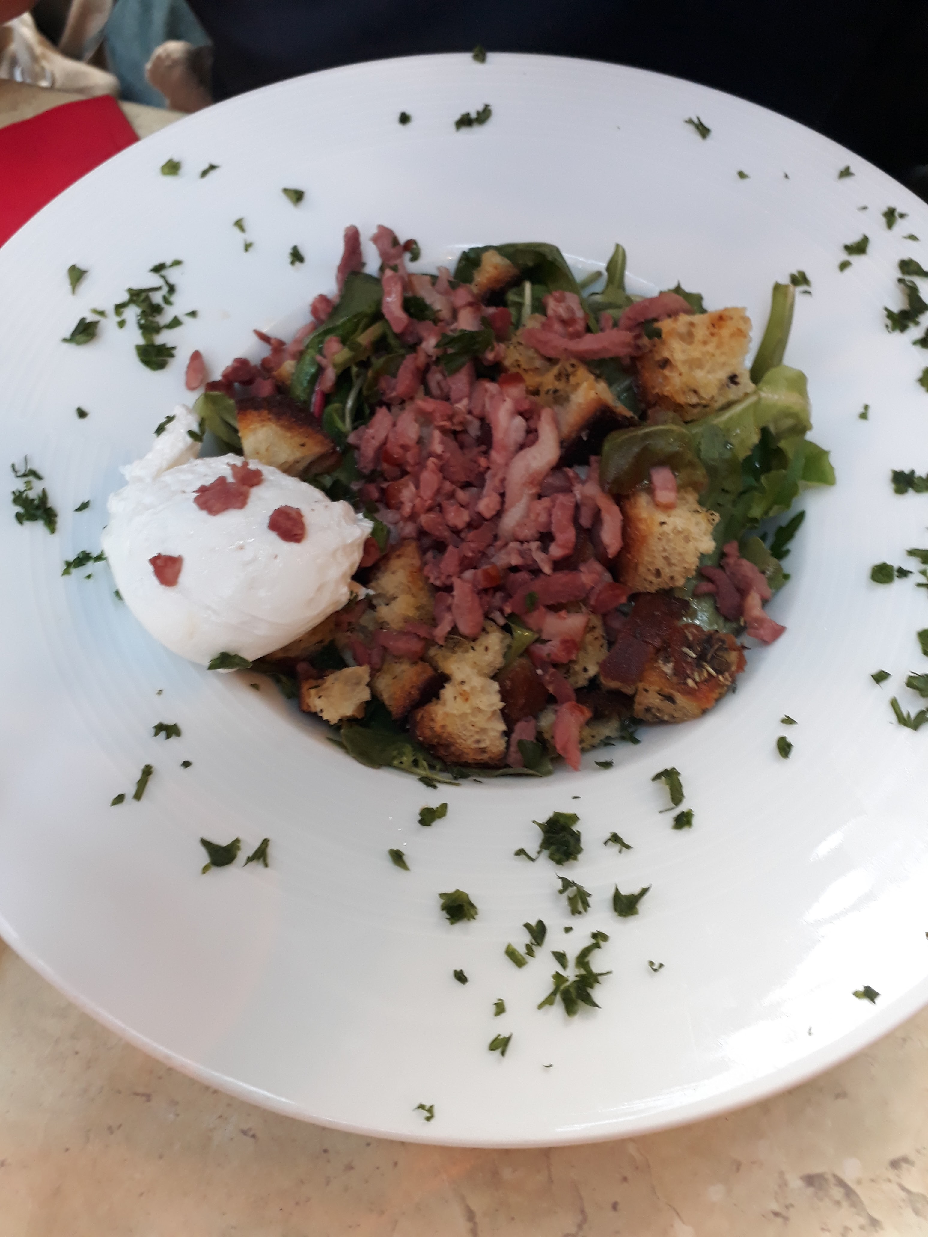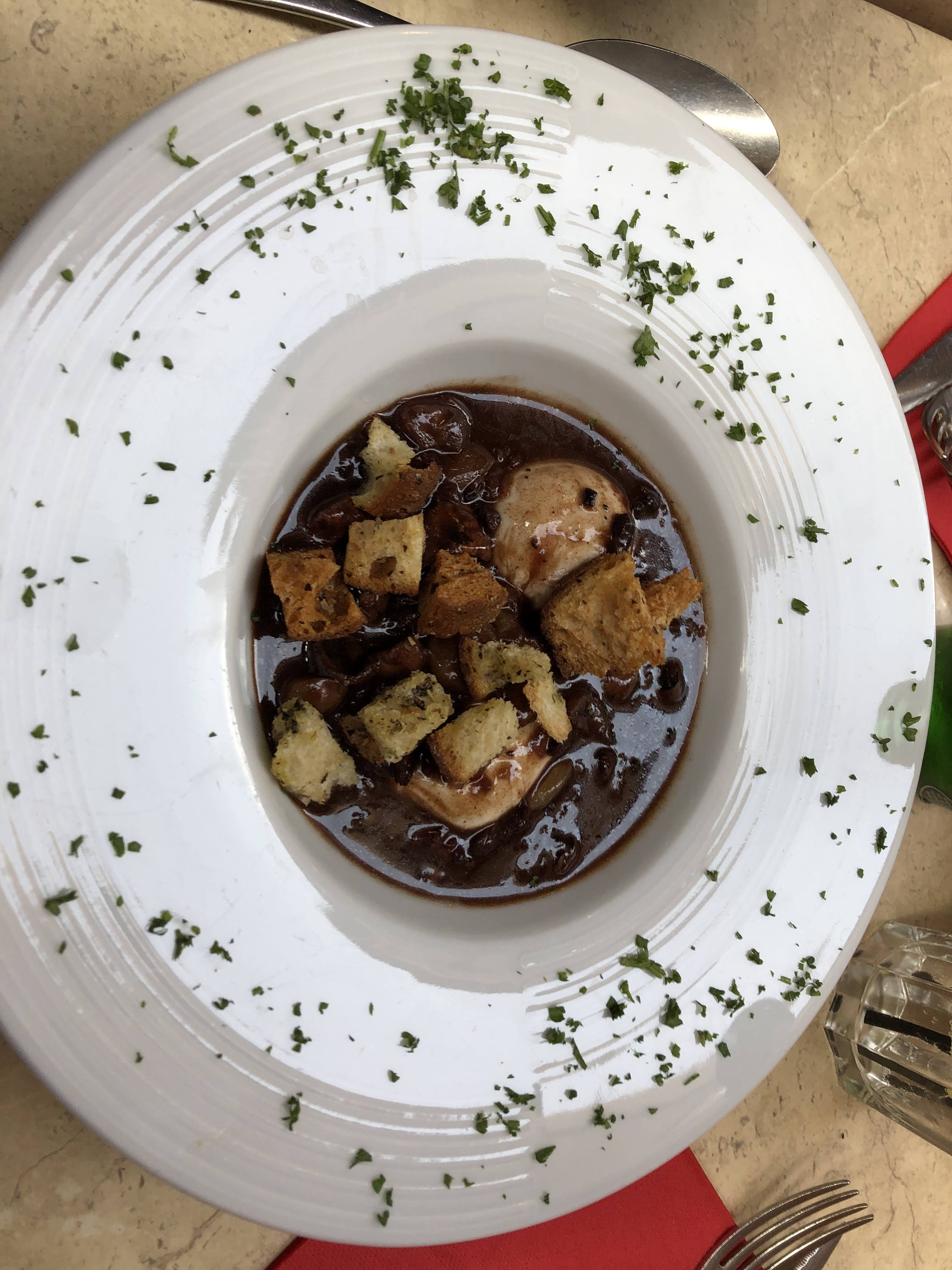 Désastre culinaire et pécuniaire. Oublie les croutons dans une salade lyonnaise. Sauce très salées pour un plat de saucisson chaud. Le chef qui m'appelle chef et qui me prend de haut à achevé ma soirée....