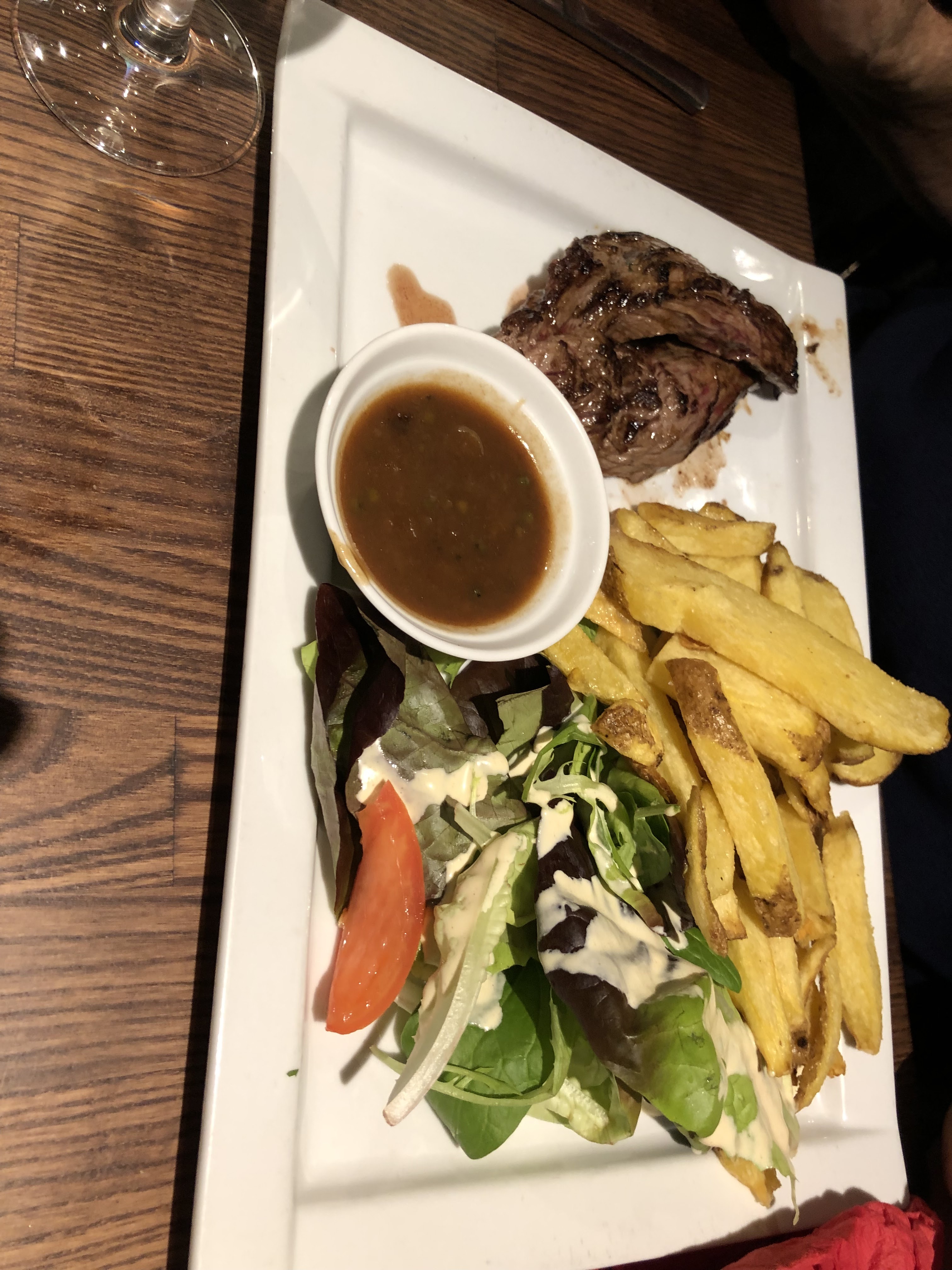 Très bien . Endroit calme , bonne cuisine , entrecôte et cuisses de grenouilles parfaites . Pas embêter par les serveurs toutes les 5 minutes . Parfait . On reviendra avec plaisir .