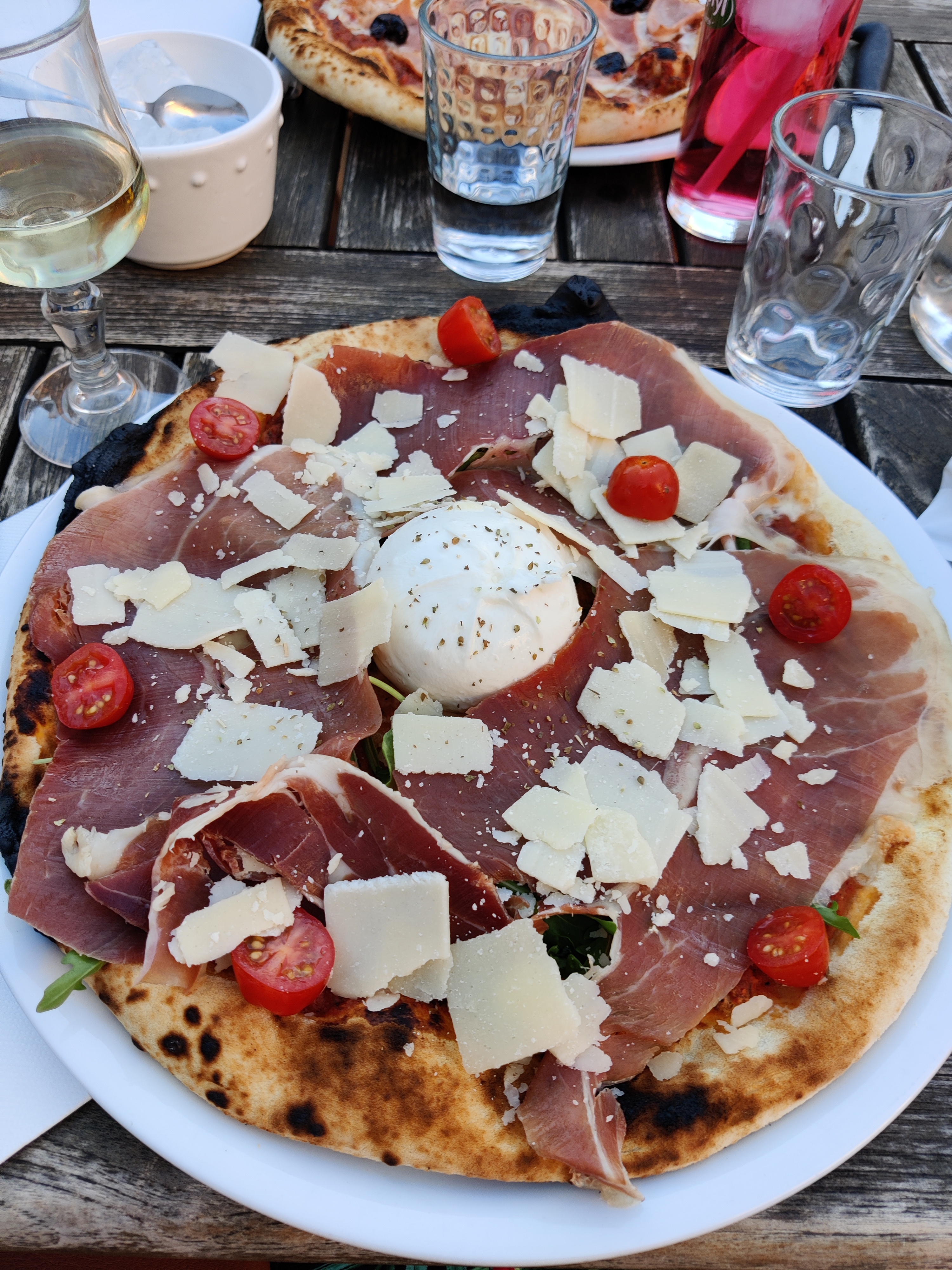 Super restaurant nous y sommes allés 2x pendant notre petit sejour. On y à mangé pizzas (vraiment excellente), la salade pareil elle a adoré. Bref tout était très bien servit et vraiment très très bon. Le service aussi été parfait nos chiens (un tout petit et très un grand) on été bien reçu aussi. Surtout n'hésitez pas à venir manger vous ne serez pas déçu.