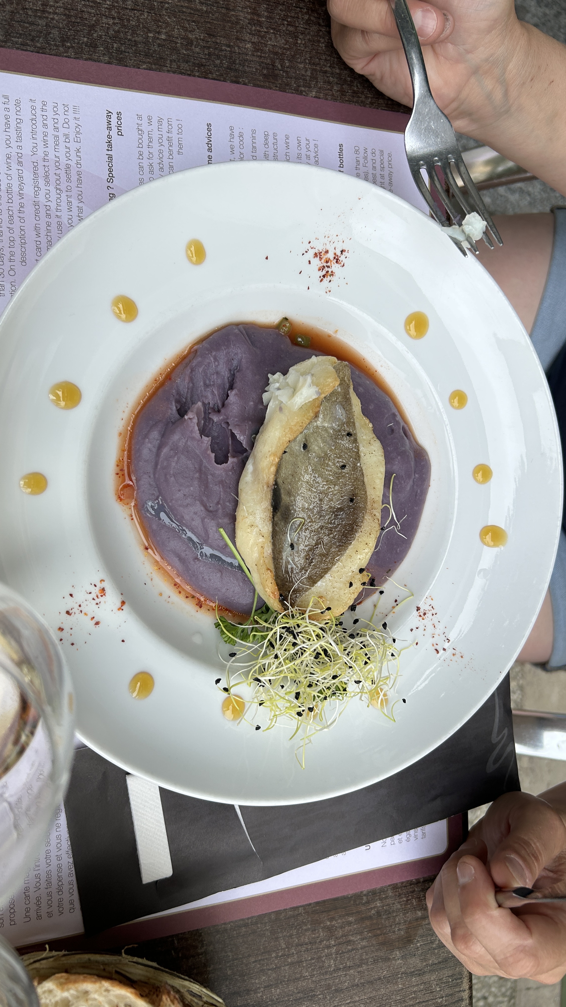 J'ai pris un bar au beurre blanc assiette à 19€ quand même. La serveuse avait oublié le beurre blanc qu'il a fallu réclamer. Ce ne serait pas grave si le filet de bar n'était pas à moitié cru ! Quand je l'ai signalé il m'a été répondu il fallait le dire on l'aurait refait cuire !!! Restaurant non climatisé en période de canicule..... Point positif : le bar à vins, sympa et varié dans son choix.