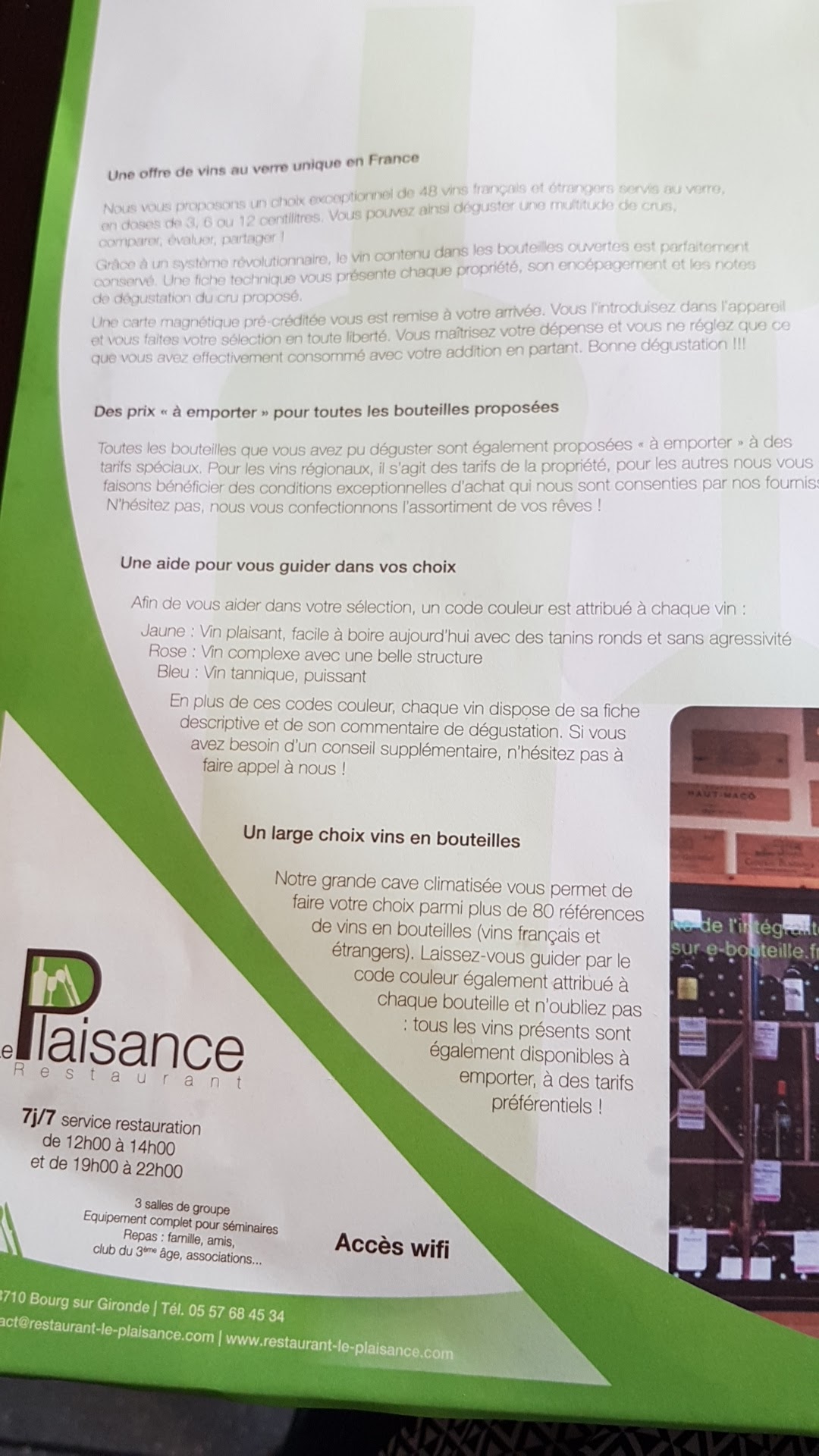 Le paradis des amateurs de vin / a Wine Lover's Paradise! With its 48 wines to taste by the glass, Le Plaisance is a wine lover's paradise and France's largest wine bar. Good food and tapas (beware, the chef loves to put cream in his dishes LOL) and an amazing wine dispensing system. Highly recommended! Avec ses 48 vins à déguster au verre, Le Plaisance est le paradis des amateurs de vin et le plus grand bar à vin de France. On y déguste de bons mets et des tapas (attention, le chef affectionne particulièrement la crème LOL) et on se sert des verres de vin par le biais d'un système époustouflant. Nous recommandons vivement Le Plaisance !