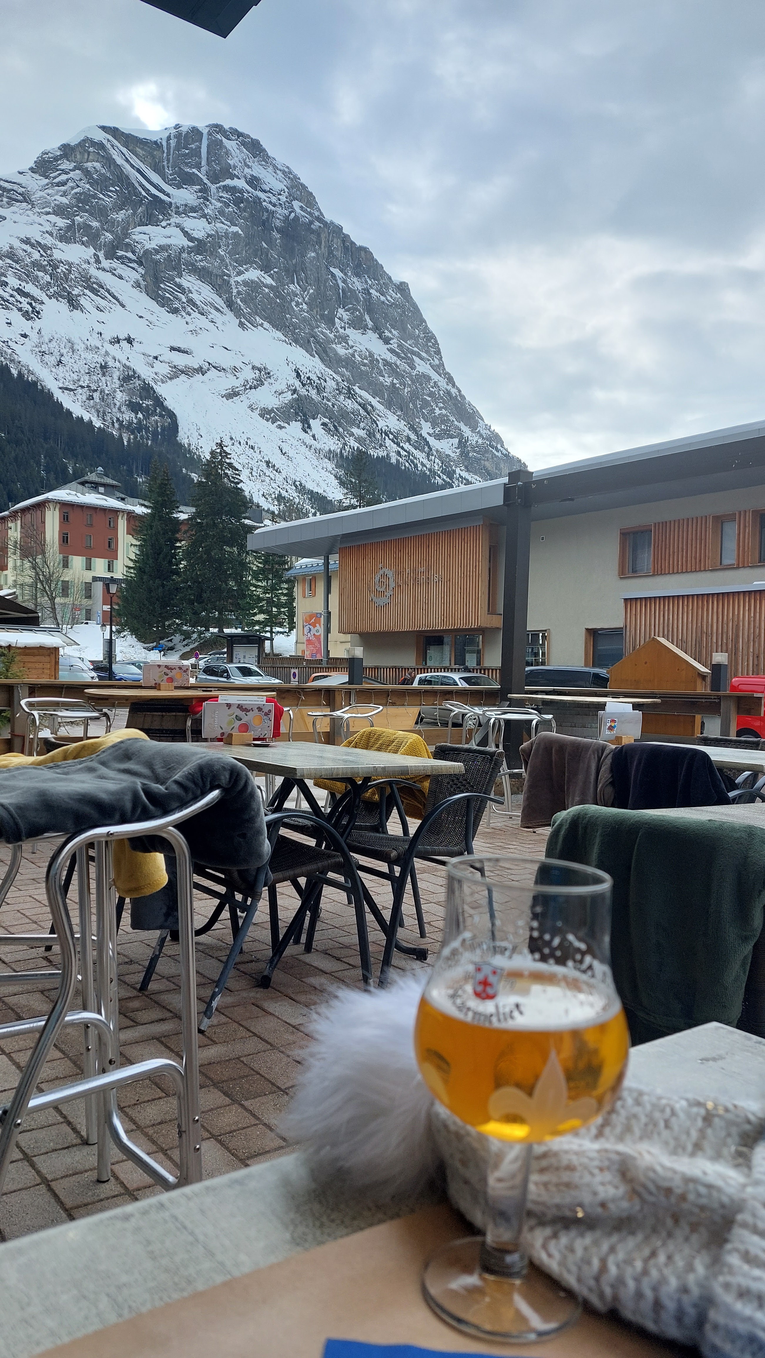 Bon goûter. Dommage que la terrasse ne soit pas entièrement abrité lorsqu'il pleut beaucoup. Même en tenue de ski c'est compliqué de rester dehors. Gaufres , chocolat viennois et thé menthe très bons. Accueil convivial avec brasero en terrasse.