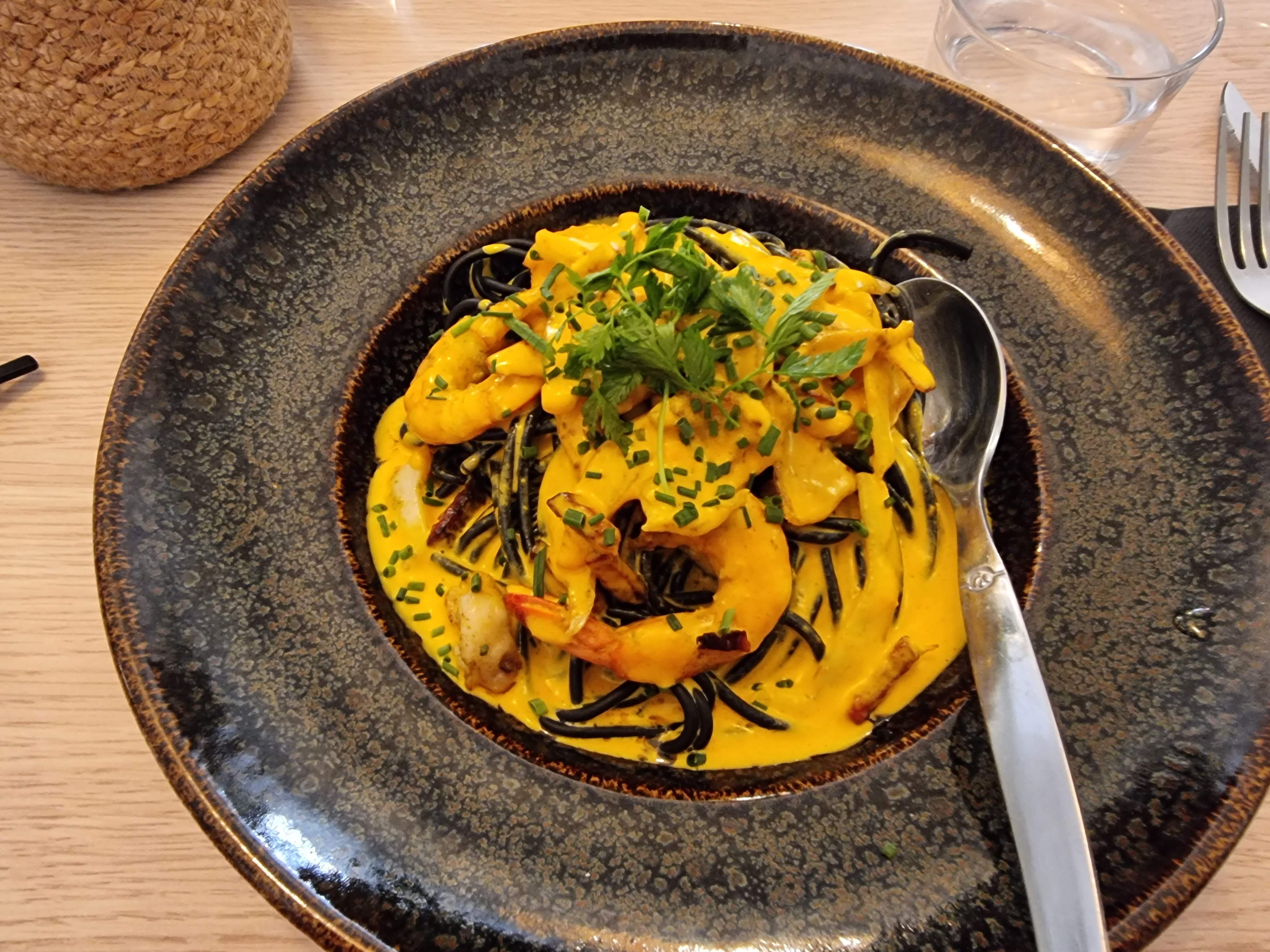 Un régal ! A chacun de nos séjours a Gruissan, nous renouvelons l expérience et sommes ravis. Les pâtes a l'encre de sèche, calamar, gambas, chorizo, une tuerie ! J'ai déjà hâte de revenir